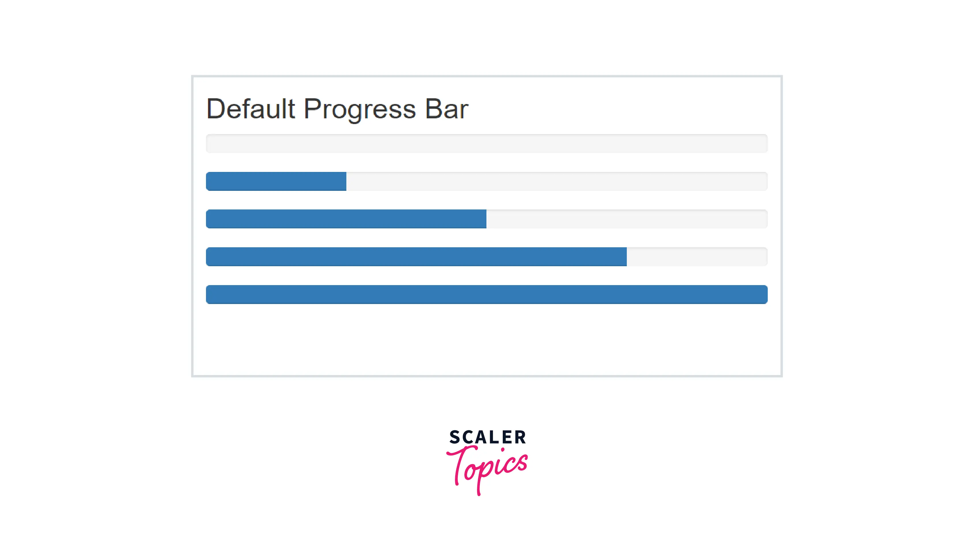 A default progress bar is created using two HTML elements, some custom CSS to set the width of the progress bar, and a few attributes. Let us see them in detail and understand how they work.