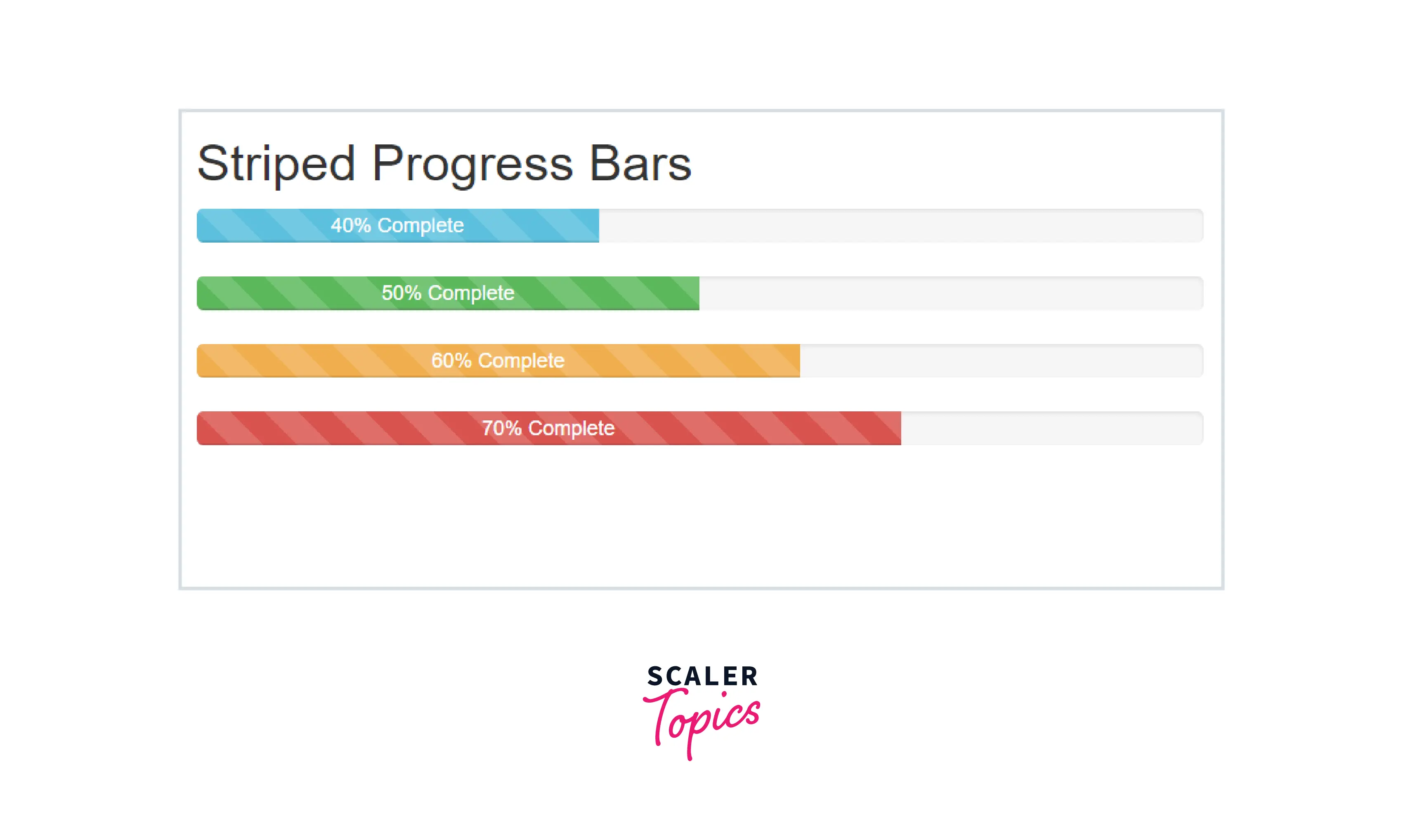 You can create striped progress bars in bootstrap as well for which you need to add the .progress-bar-striped utility class with the .progress-bar utility. It applies a stripe via CSS gradients over the progress bar's background colors. Therefore, it appears to be striped.