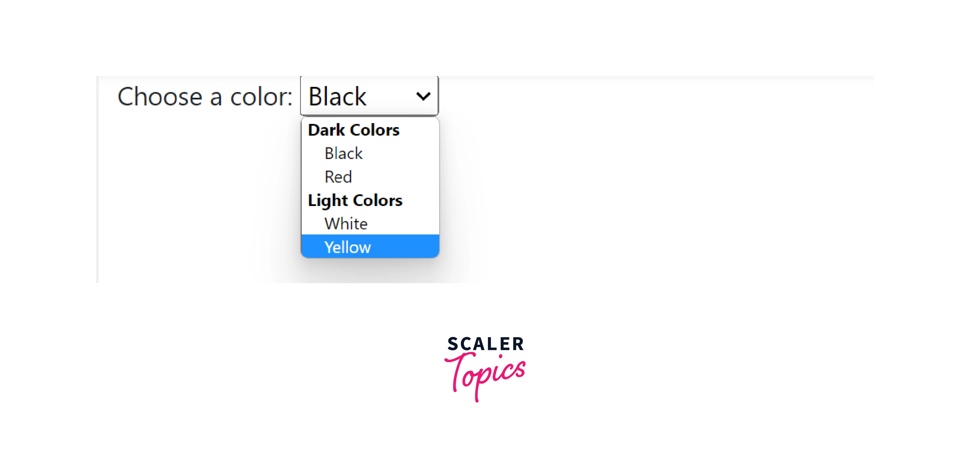 Dropdown with two groups, Dark Colors, and Light Colors and each having 2 options.