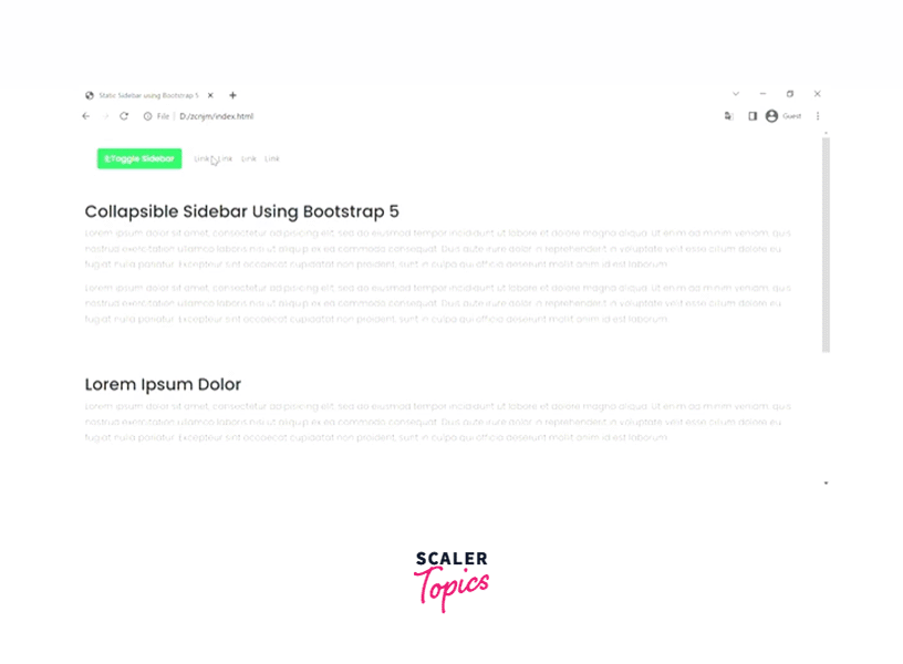 In this section, we are going to build a static collapsible sidebar menu using bootstrap 5 that scrolls down along with the page.