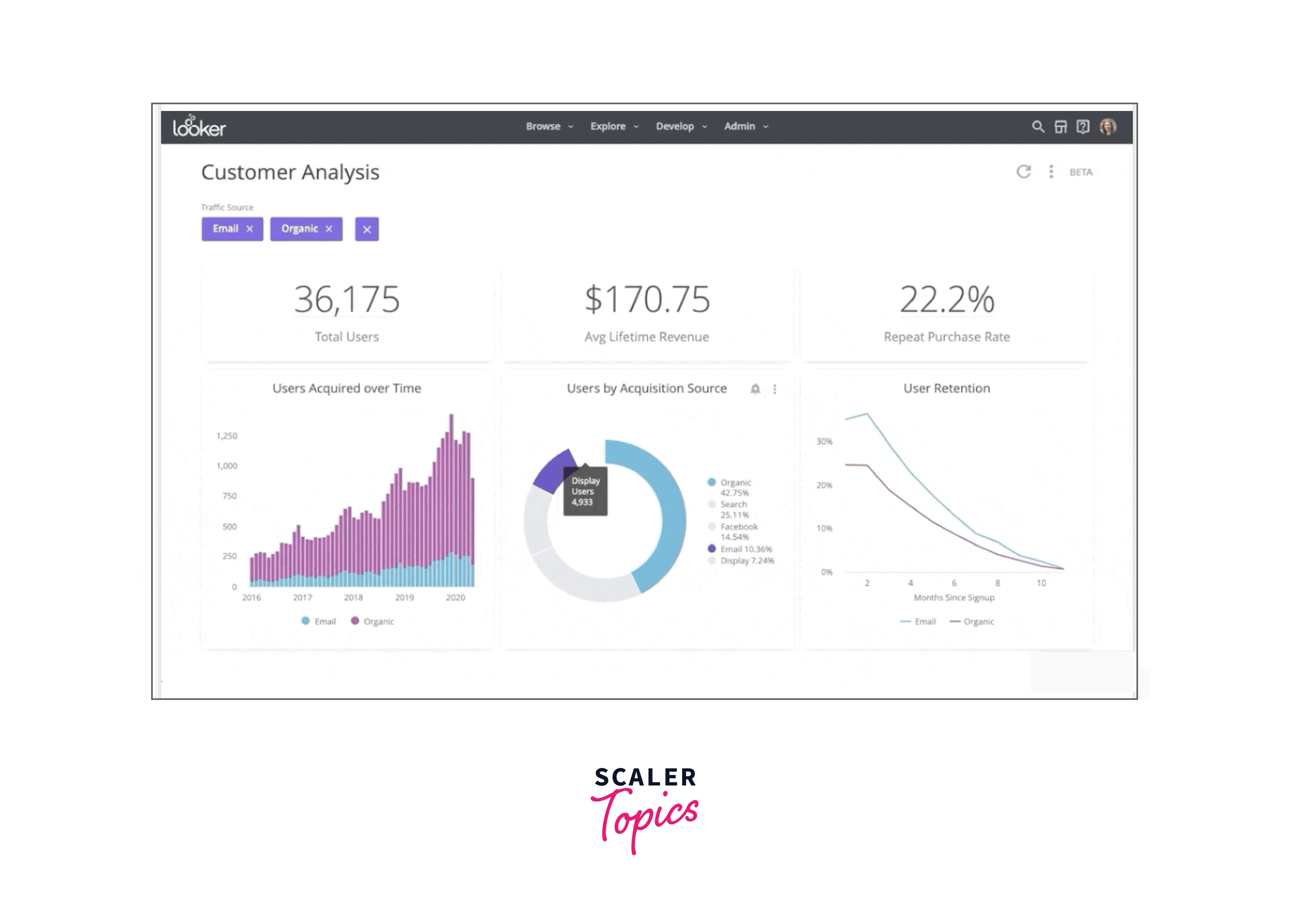 Recently this Business intelligence tool has been a part of the Google Cloud, which offers a distinct integration with any database that works with SQL. Introducing Looker, known as the data discovery application, that works great for any midsize-enterprises, startups, or organization-grade businesses. You can visit the website of Looker and experience its benefits such as user-friendly and quick visualizations, reliable support (24-hour tech support), powerful collaboration features (report and data can be shared through USL or email), reliable tech support (tech team).