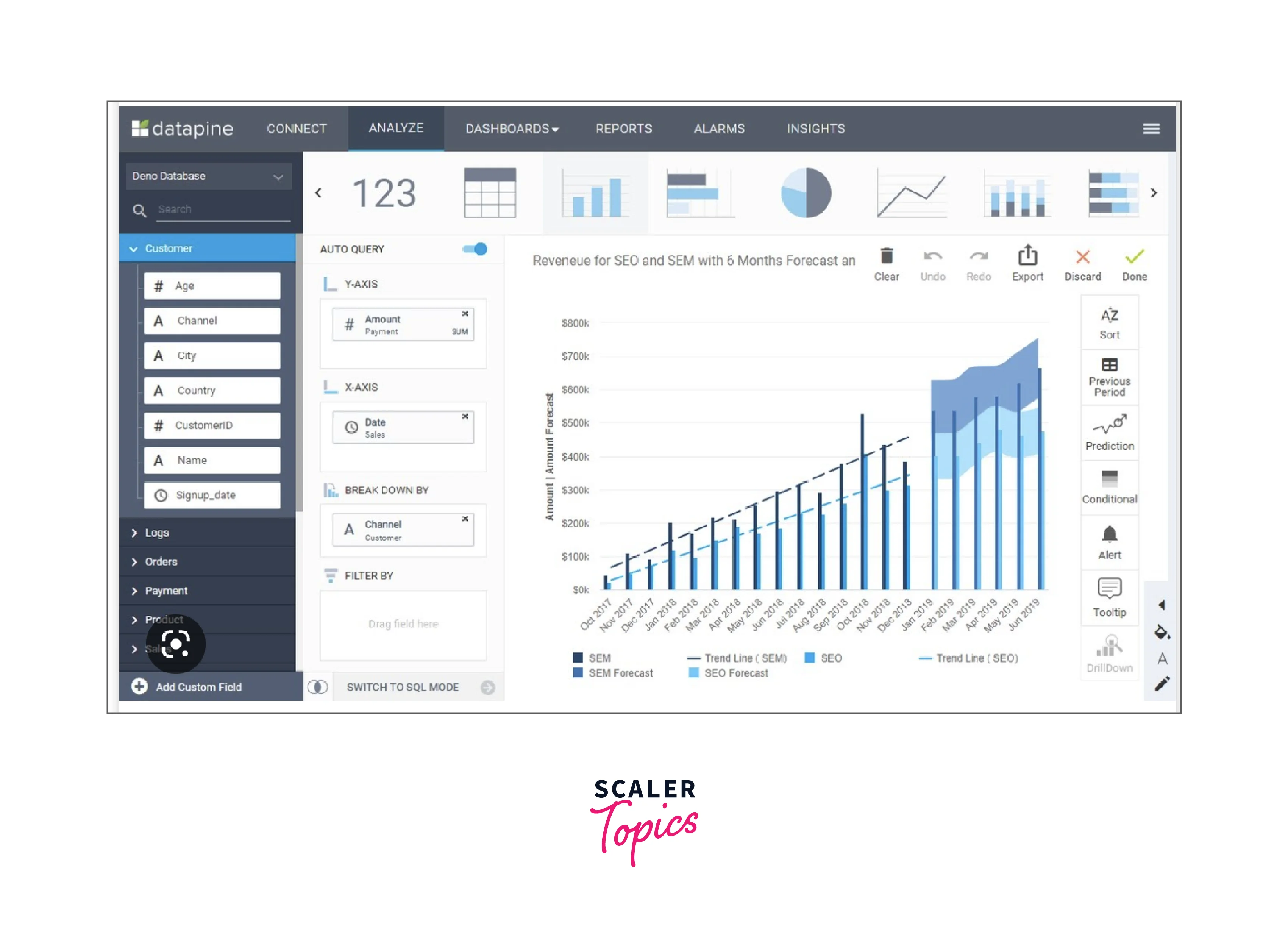 If you are not involved in the technical field but still need a solution for generating insights from the data, then Datapine is the one-stop solution to go for. Easily accessible on its website www.datapine.com, datapine can be defined as a one-stop solution that facilitates the complex processes of data analytics. The Datapine’s self-service approach and its comprehensive analytics, ensure that both the business users (non-technical) and data analysts (technical) can simply integrate various data sources, perform the advanced level of data analysis, build interactive dashboards for business users while quickly generating actionable data-driven insights.