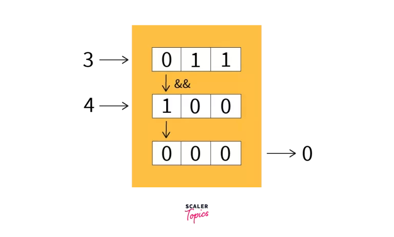- The above code snippet performs the bitwise AND operation on 3 and 4. Let’s see their working in detail.