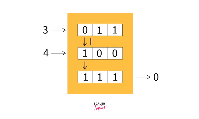 - The above code snippet performs the bitwise OR operation on 3 and 4. Let’s see their working in detail.