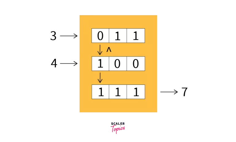- The above code snippet performs the bitwise XOR operation on 3 and 4. Let’s see their working in detail.