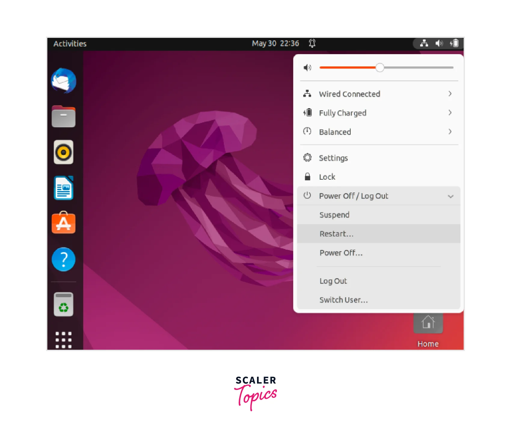 Start by rebooting the system. You can do this by clicking on the "Restart" option in the menu or by using the reboot command in the terminal.