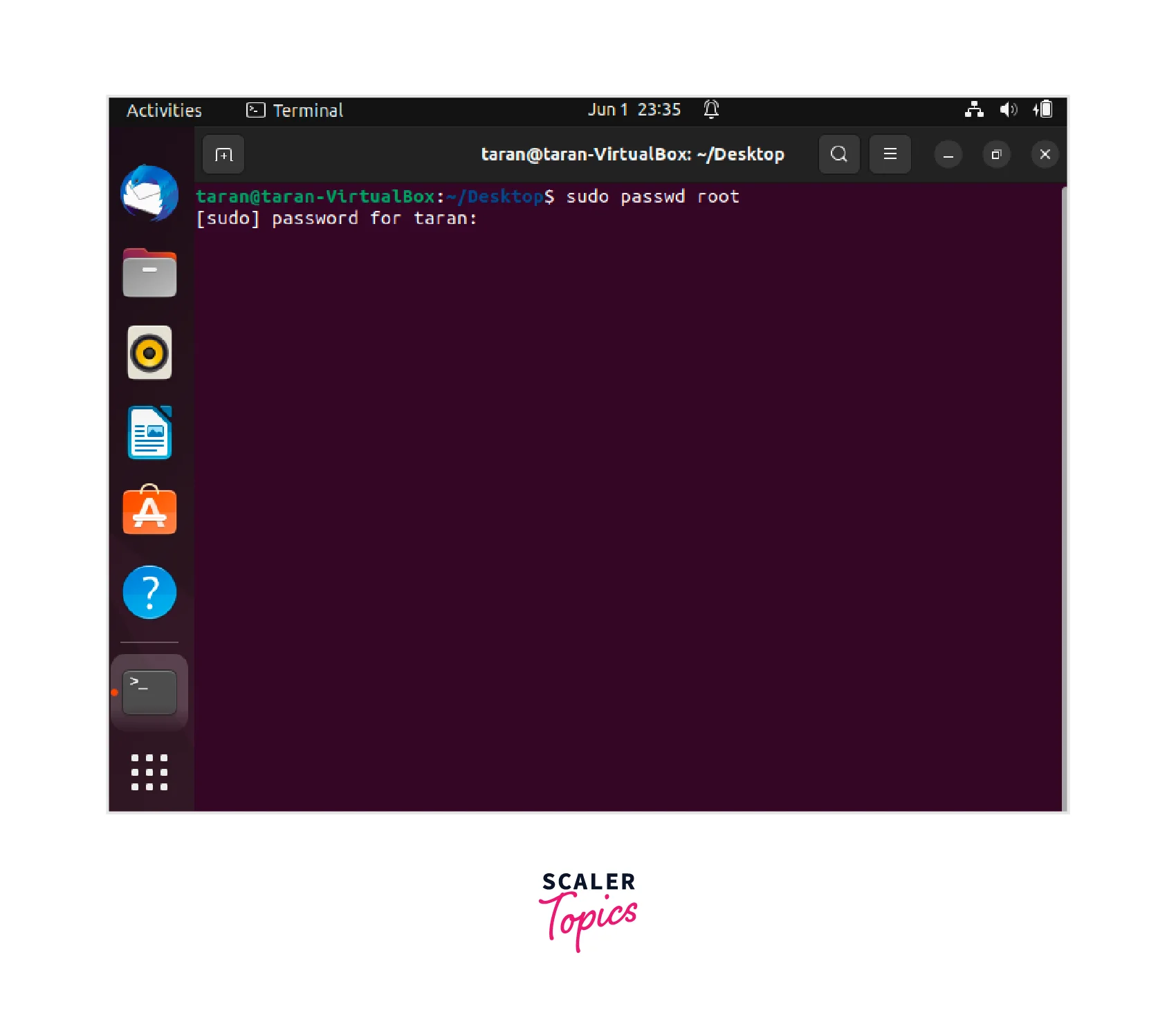 In the terminal, type the following command and press Enter: