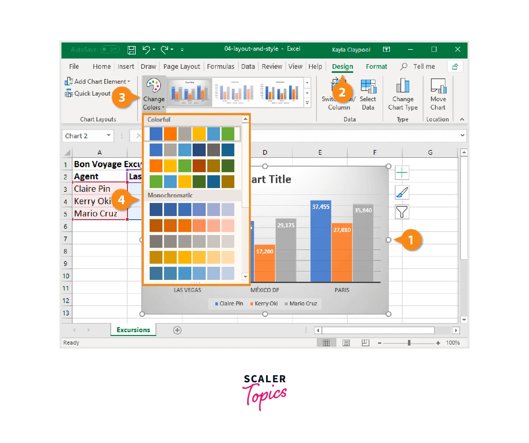 - To customize the style of your chart, click on the "Chart Styles" button on the "Chart Design" tab. This will give you several options for pre-designed chart styles that you can apply to your chart.