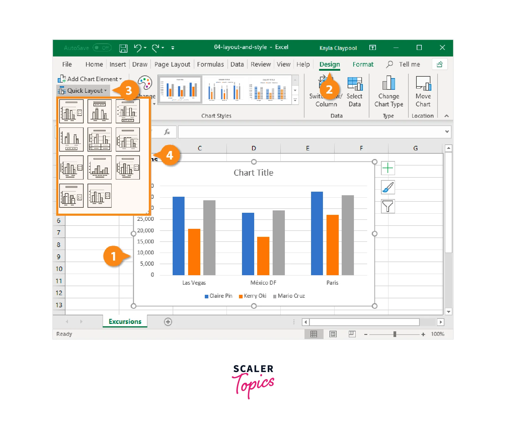 - Click on one of the "Quick Layout" options to apply a pre-designed layout to your chart. You can hover over each option to see a preview of what it will look like.