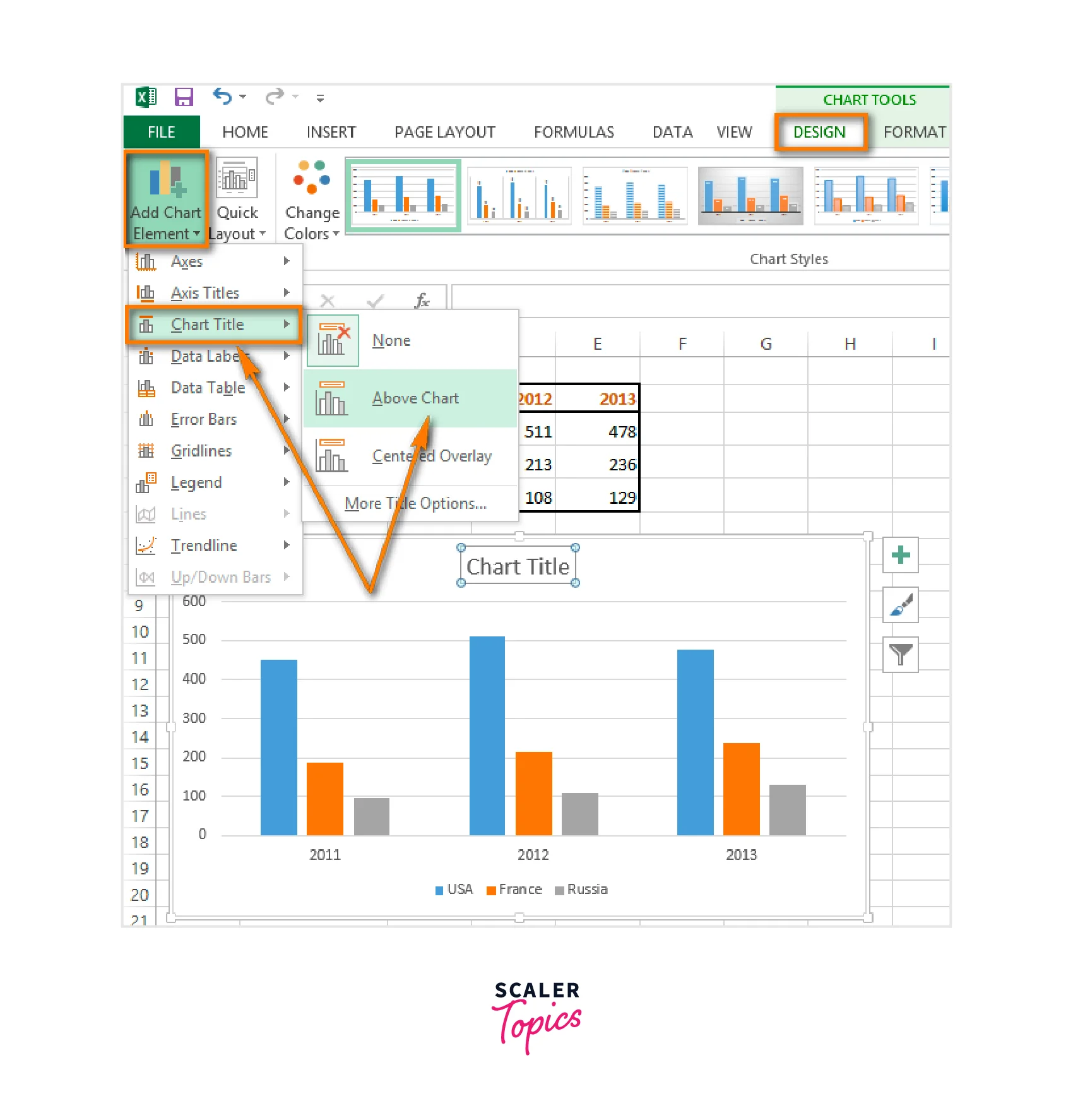 - To change the colors, fonts, and borders of your chart, use the options on the "Format" tab of the ribbon.