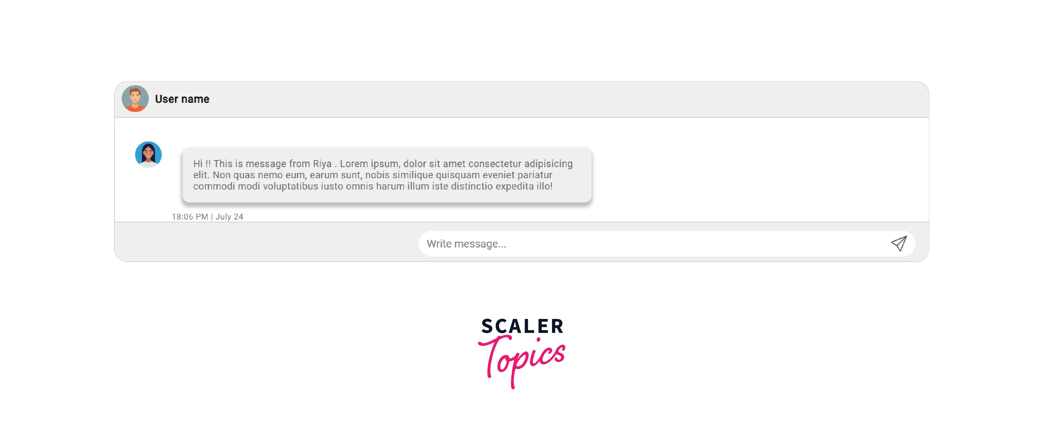 We will place the incoming messages inside the msg-page container. The incoming message comprises the sender's avatar, the text message, and the exact time each message was sent.