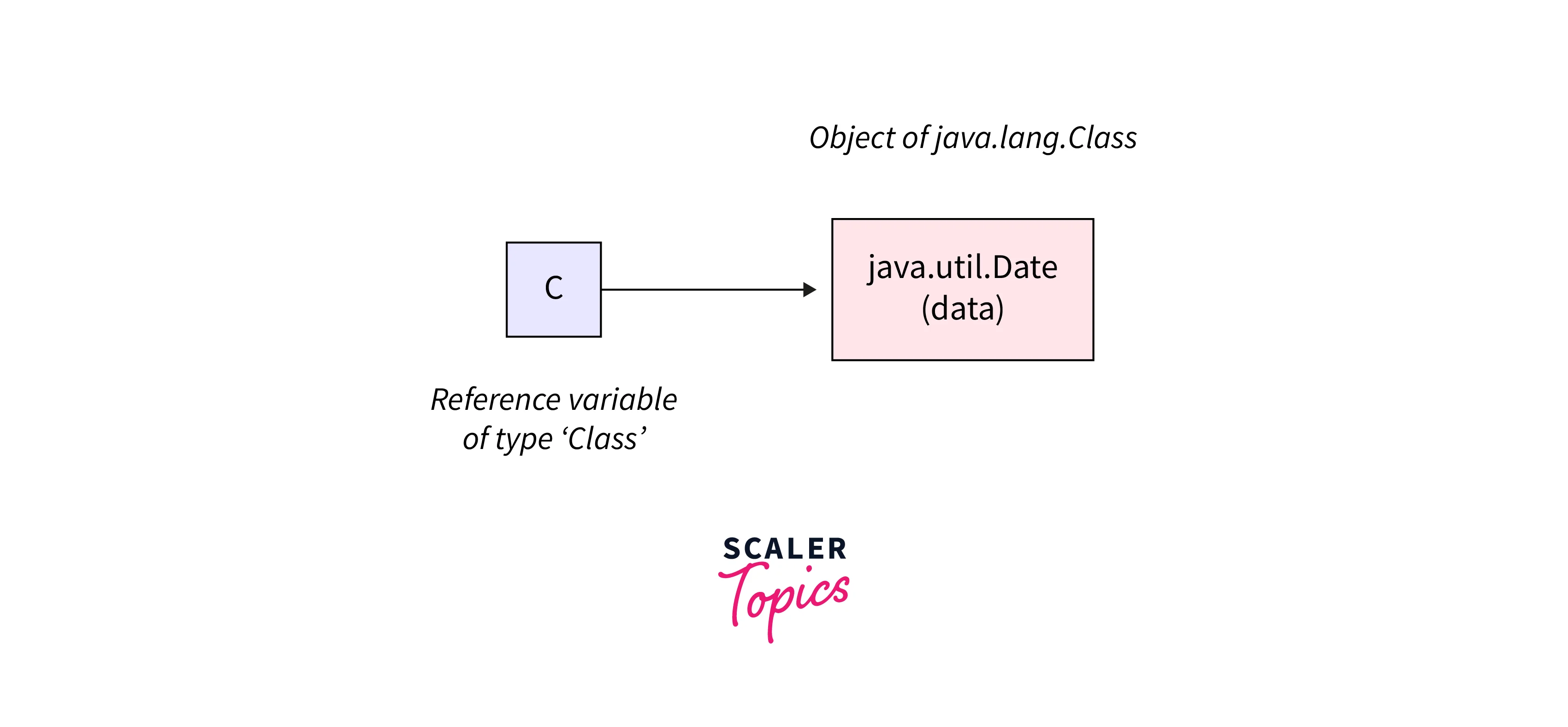 This Class.forName method loads java.util.Date class and returns the object of java.lang.Class having loaded class name as the data of the object. Here c is the reference variable pointing to the object of java.lang.Class. The below image clearly explains the memory diagram of the instantiated class: