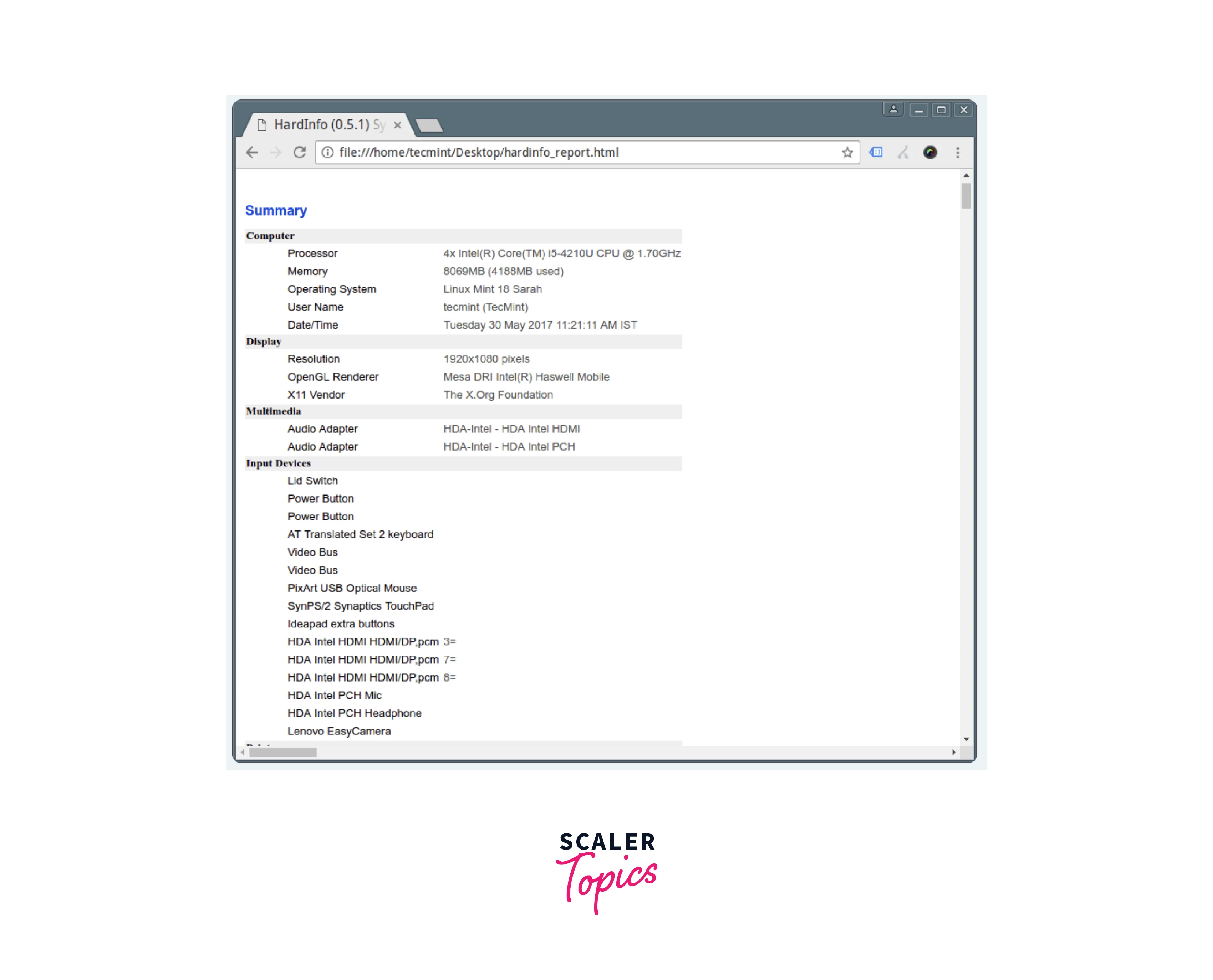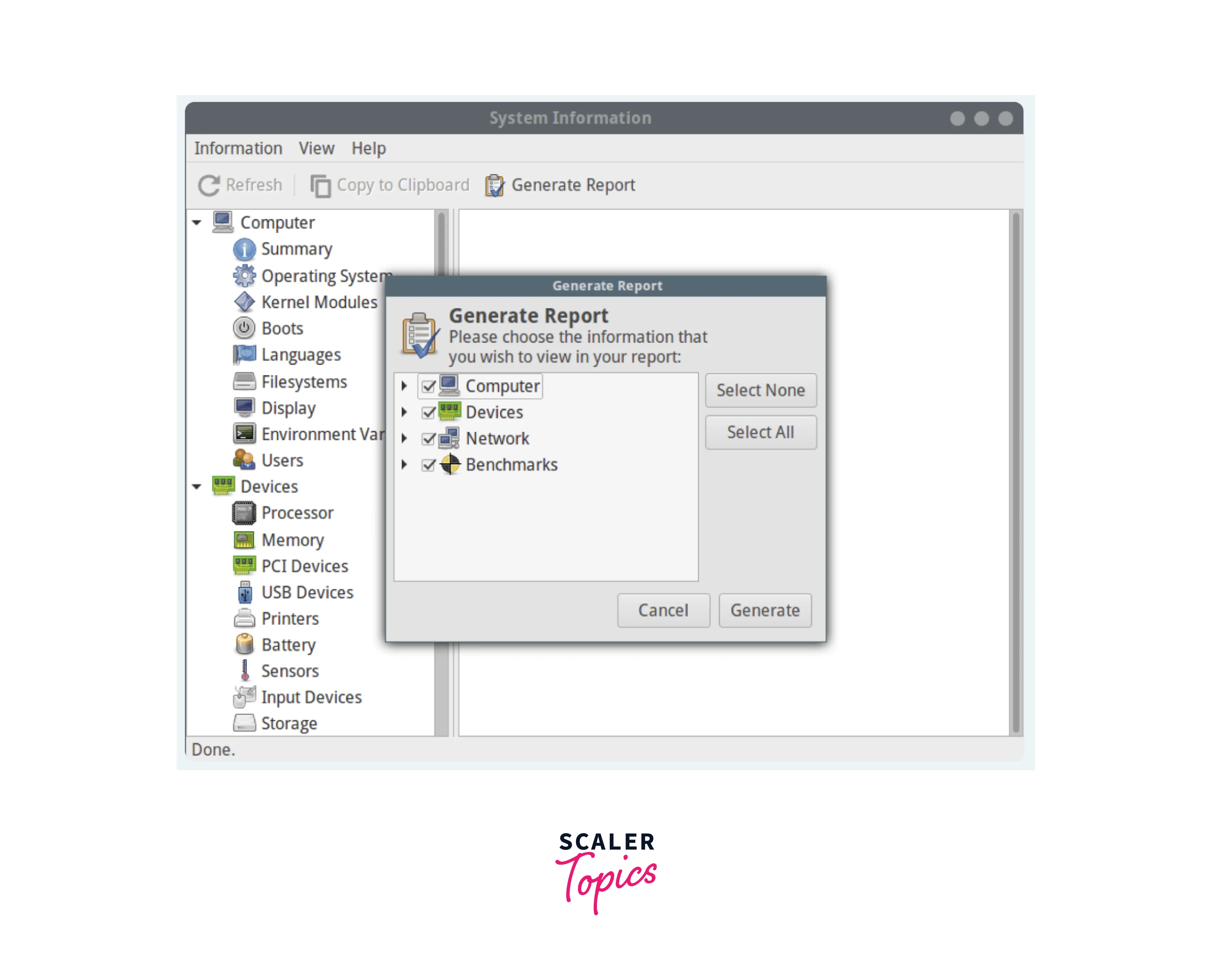 Navigate to the "Processor" section to view CPU-related information. And click generate report. Hardinfo offers a user-friendly interface and presents CPU details in an organized manner.