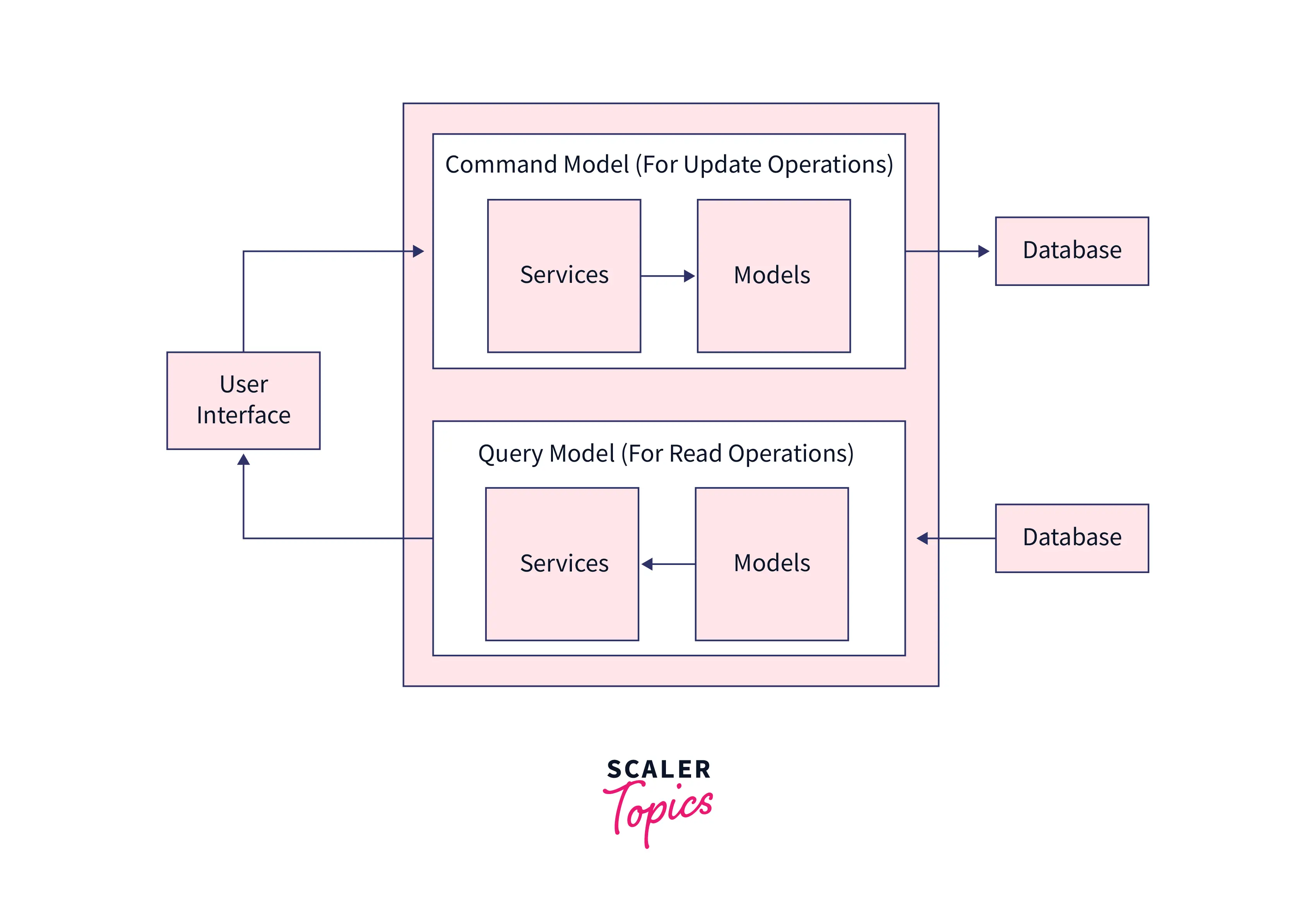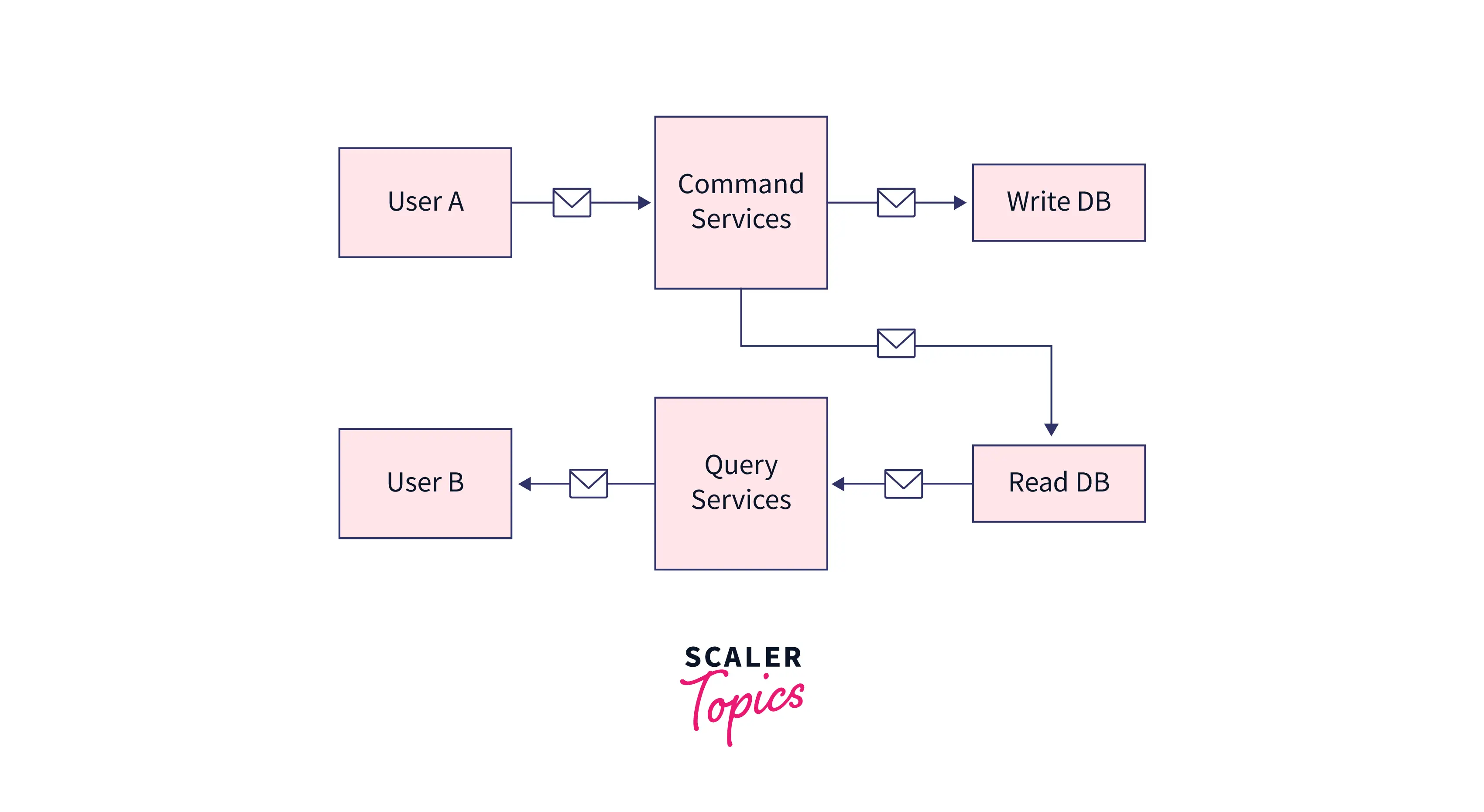 Explanation: Here, User A makes a write query. This query goes to the command service, and the command service has 2 tasks, first is to put this data in the write database, and then write this data in the read database as well. User B makes a read query, which gets served by the Read Database with the help of the Query Service.