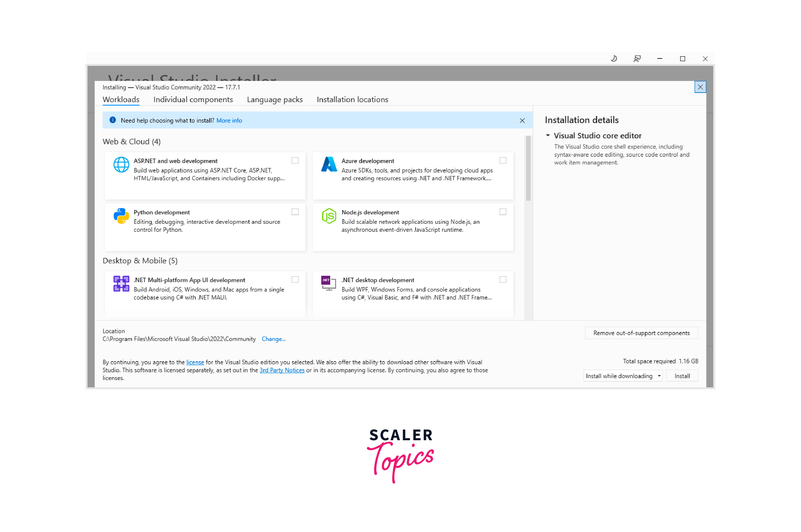 - You can customize the installation by selecting additional components, but the .NET desktop development workload should cover most C# development needs.
