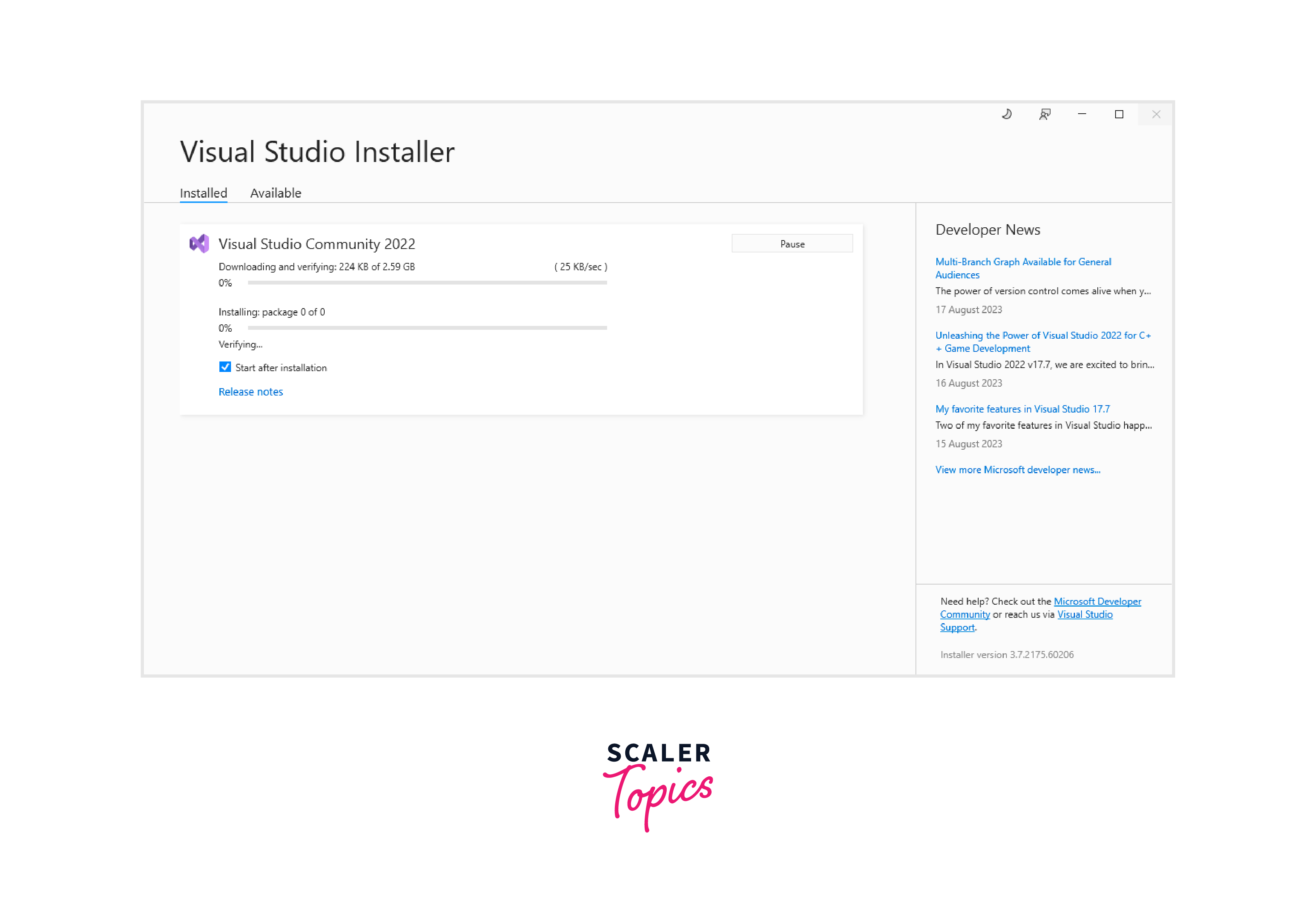 - Go to the Visual Studio website and download the latest version of Visual Studio.