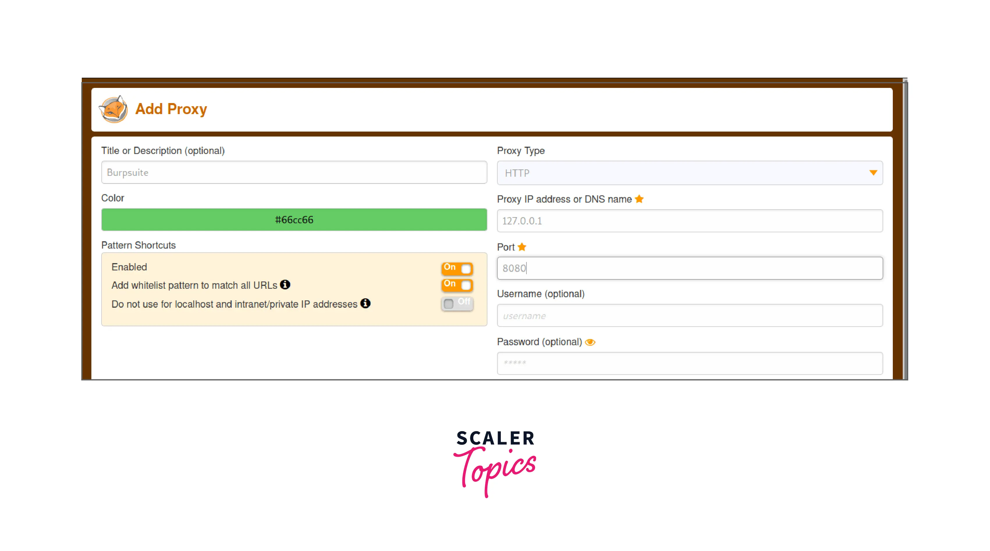 - Proxy IP Address: Your localhost/interface (127.0.0.1).