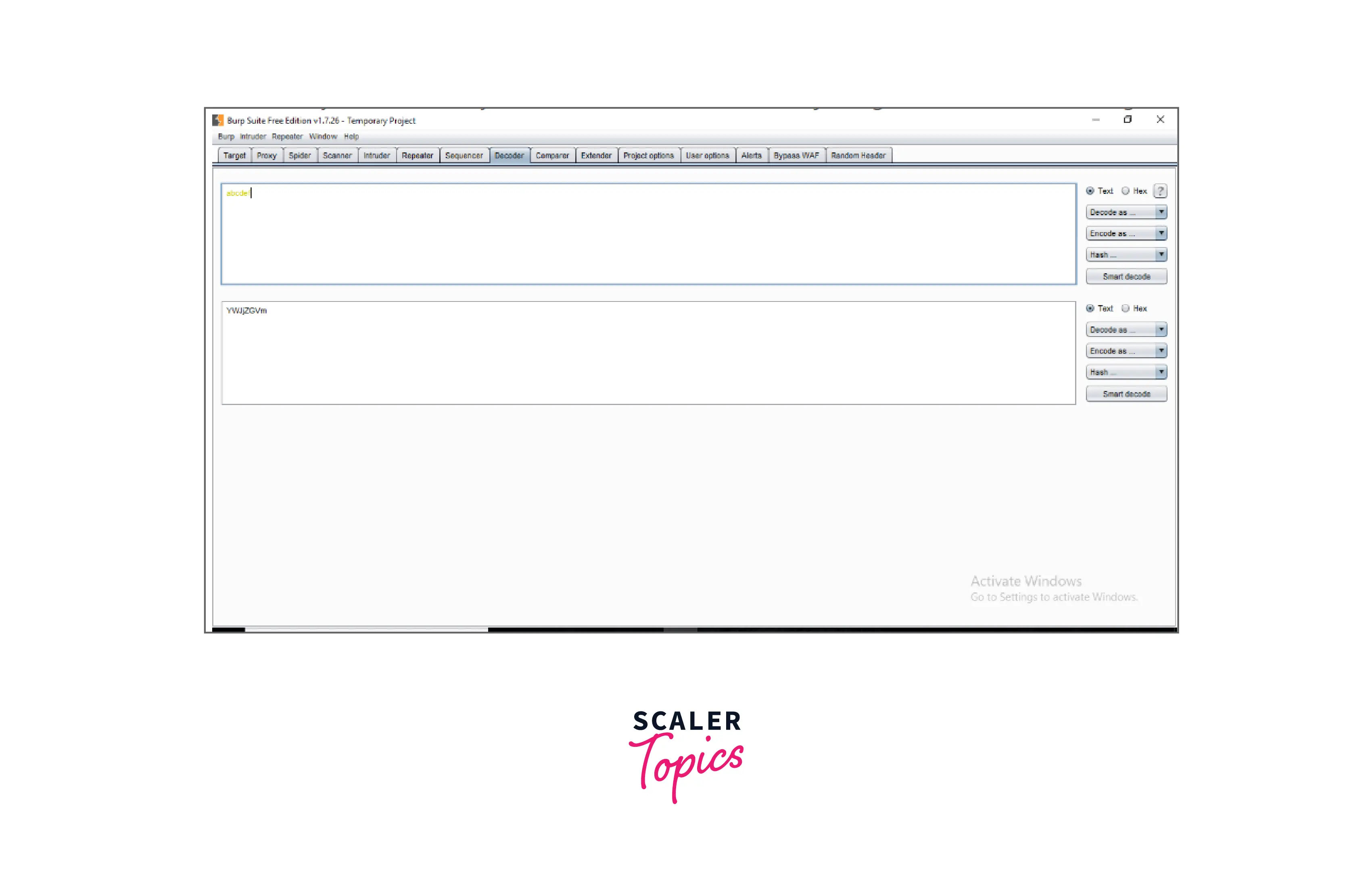 The decoder provides a list of common encoding techniques such as URL, HTML, Base64, Hex, and so on. When searching for specific data chunks inside the values of parameters or headers, this tool is quite helpful. Additionally, it is employed in the development of payloads for several vulnerability classes. Primary instances of IDOR and session hijacking are also uncovered using it.