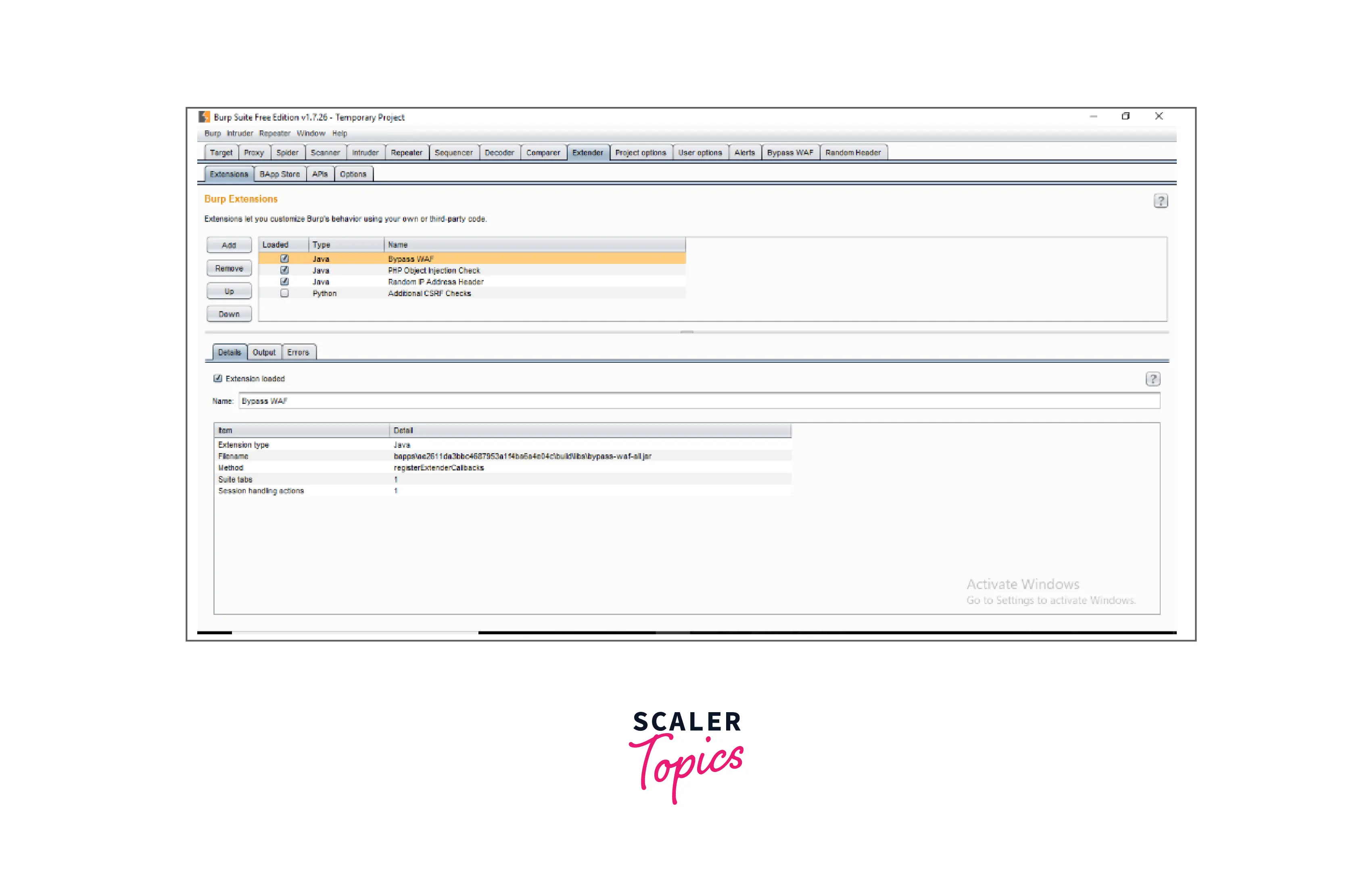BurpSuite enables the integration of extra components into the toolkit to expand its functionality. These external components are referred to as BApps. These perform the same tasks as browser extensions... The Extender window allows you to examine, modify, install, and remove them. Some of them are supported by the free community version, while others need the professional version, which is a paid upgrade.