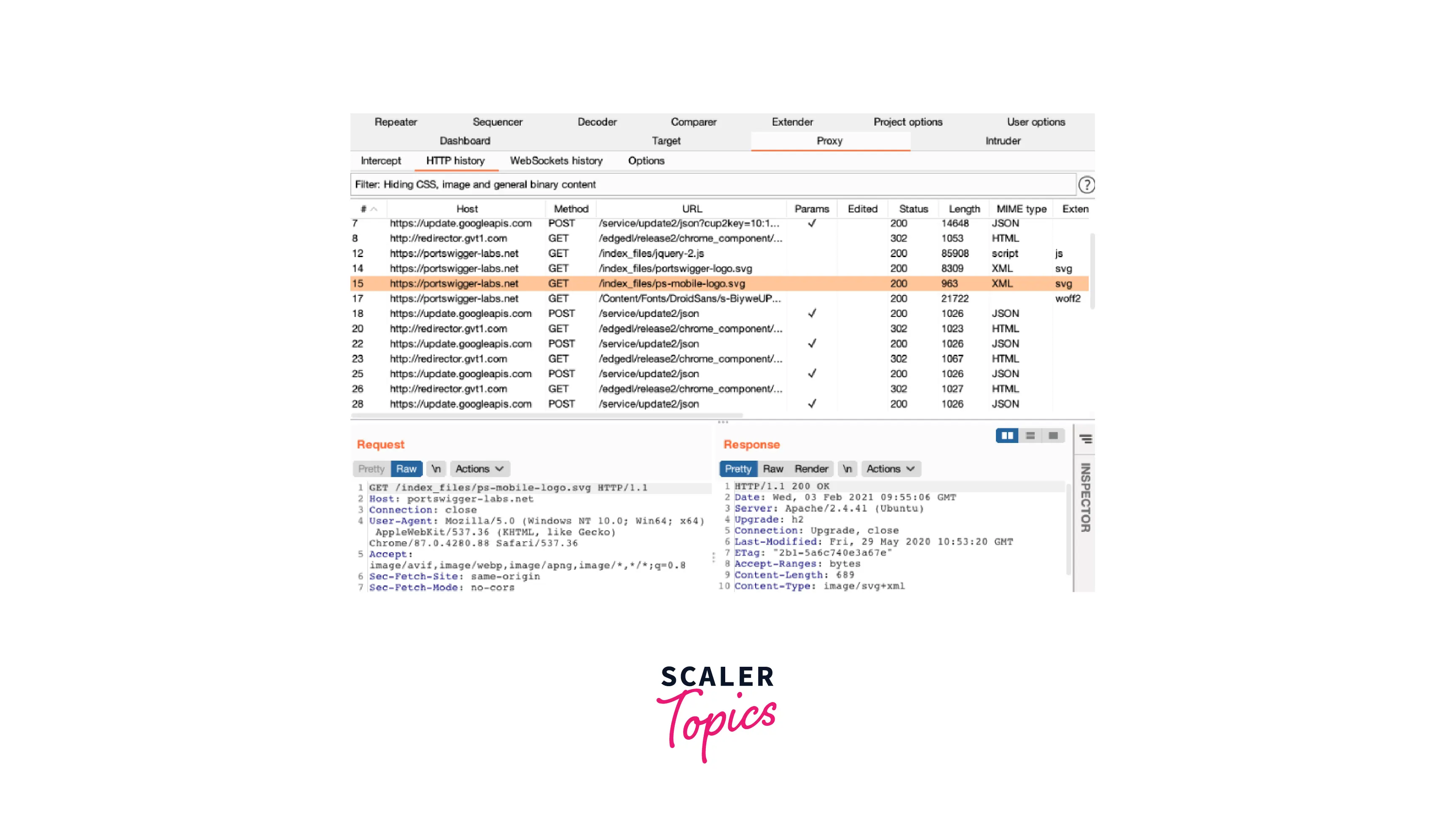The intercepting proxy in BurpSuite enables the user to view and change the contents of requests and answers while they are being sent. Additionally, it eliminates the need for copy-and-paste by allowing the user to pass the request or answer that is being monitored to another pertinent BurpSuite tool. The proxy server can be configured to run on a specific loop-back IP address and port. Additionally, the proxy may be set up to block particular kinds of request-response pairings.