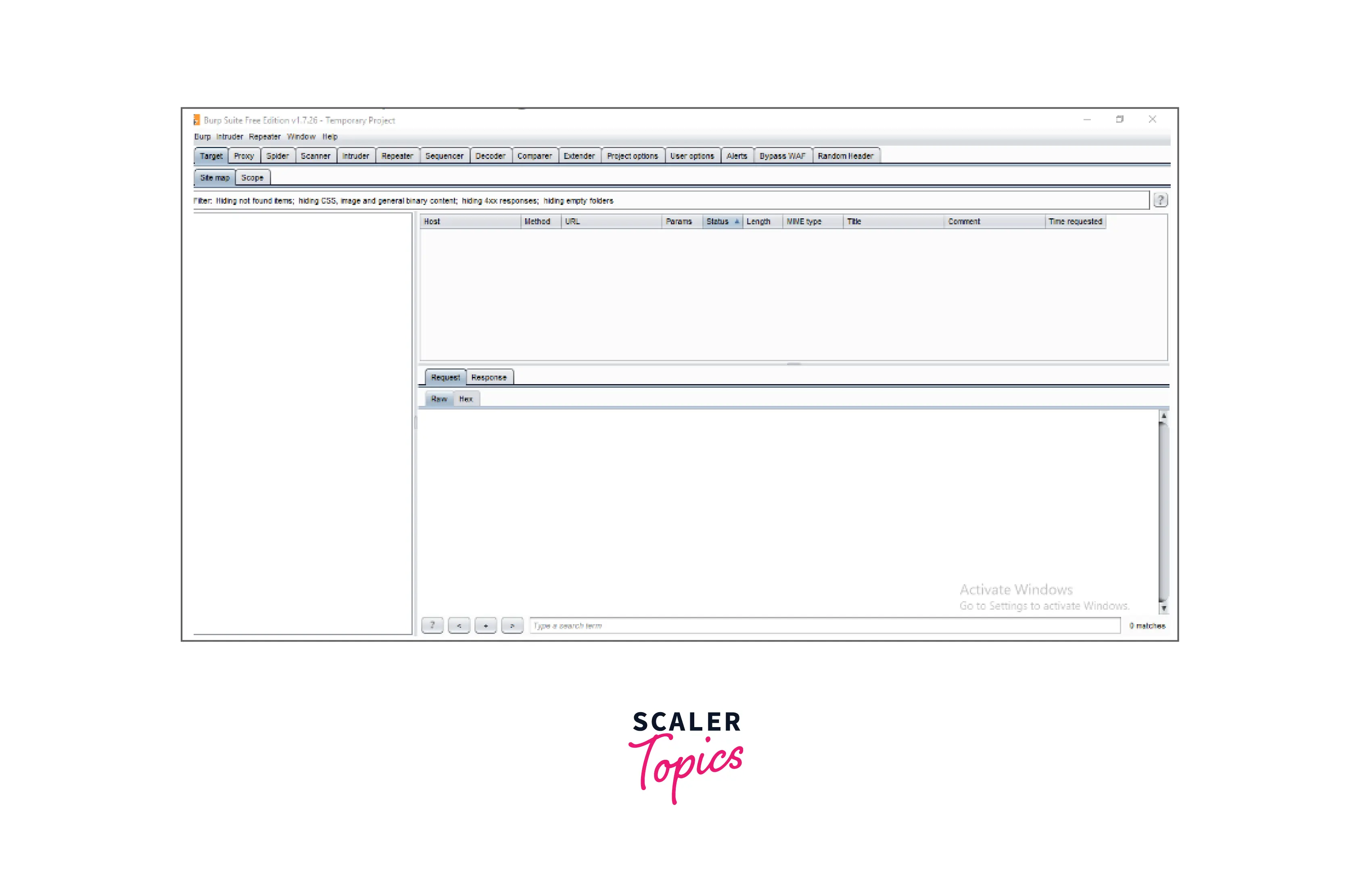 - Burp automatically generates a site map for the target application as you explore. This is shown under the Target > Site map tab.