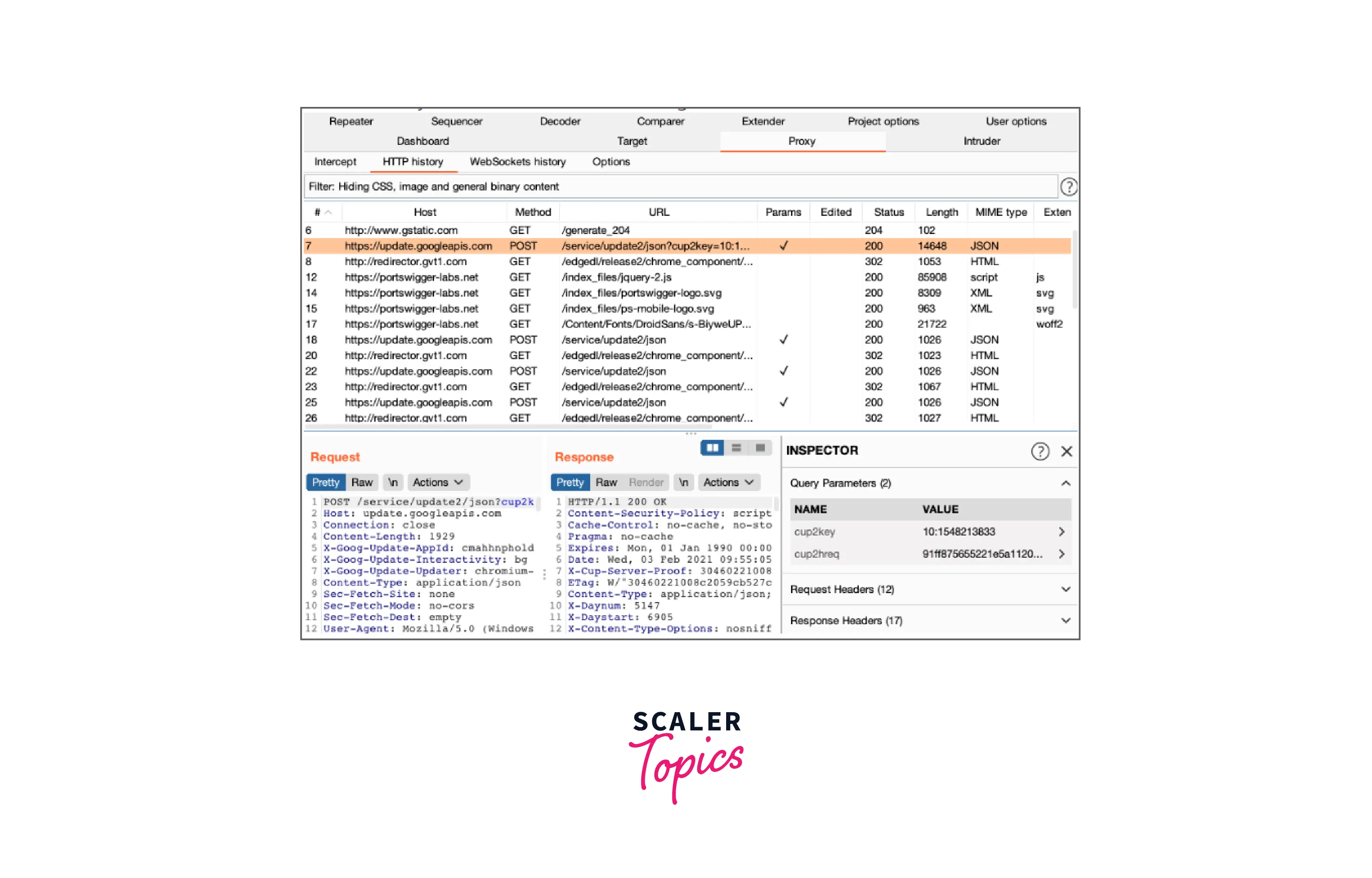 - Proxy: Enables us to intercept, examine, and alter communications between the browser and the desired web application.