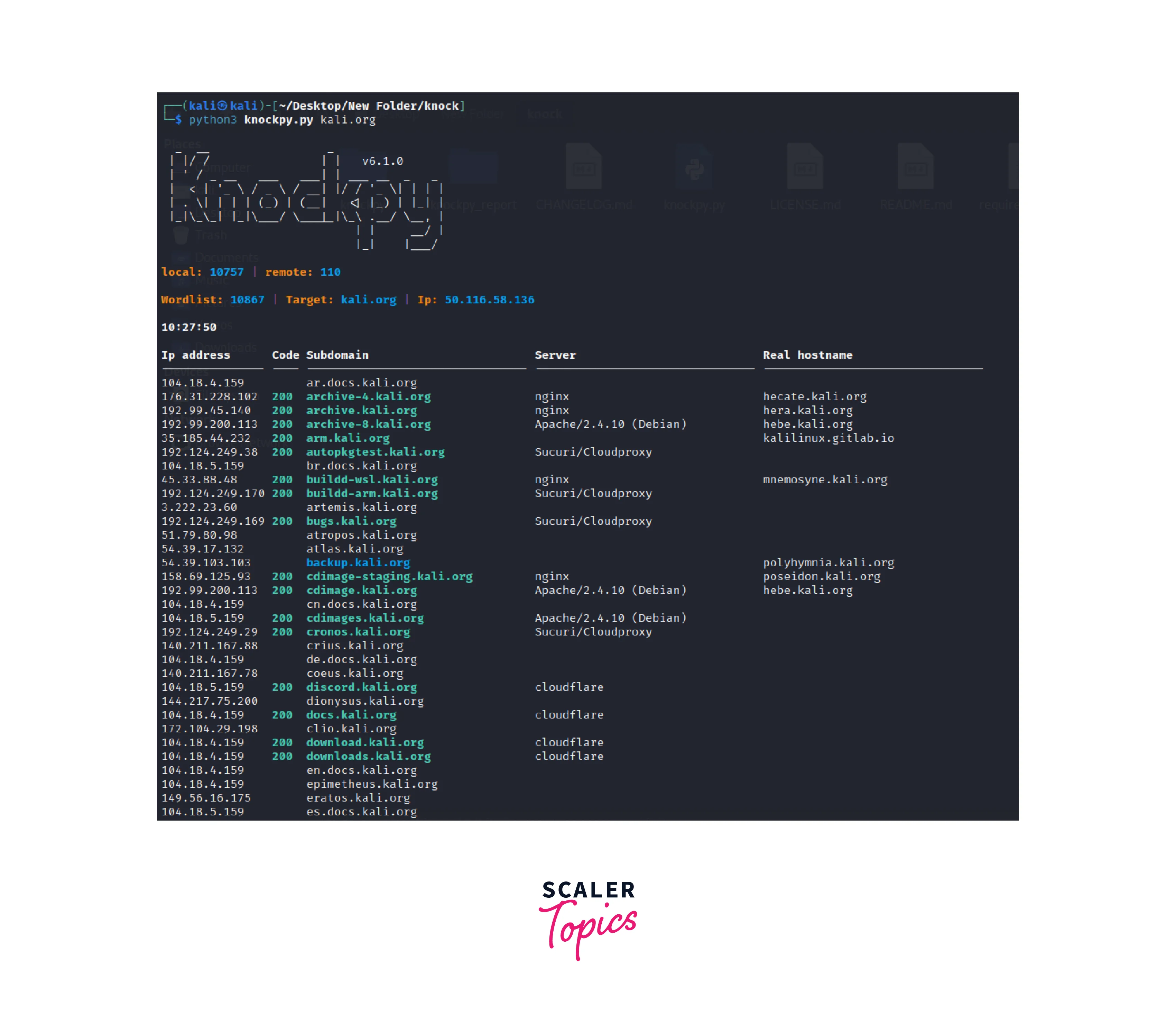 Knock will return a list of subdomains that have been found. This information can be used to identify potential vulnerabilities and assess the security of the target website.