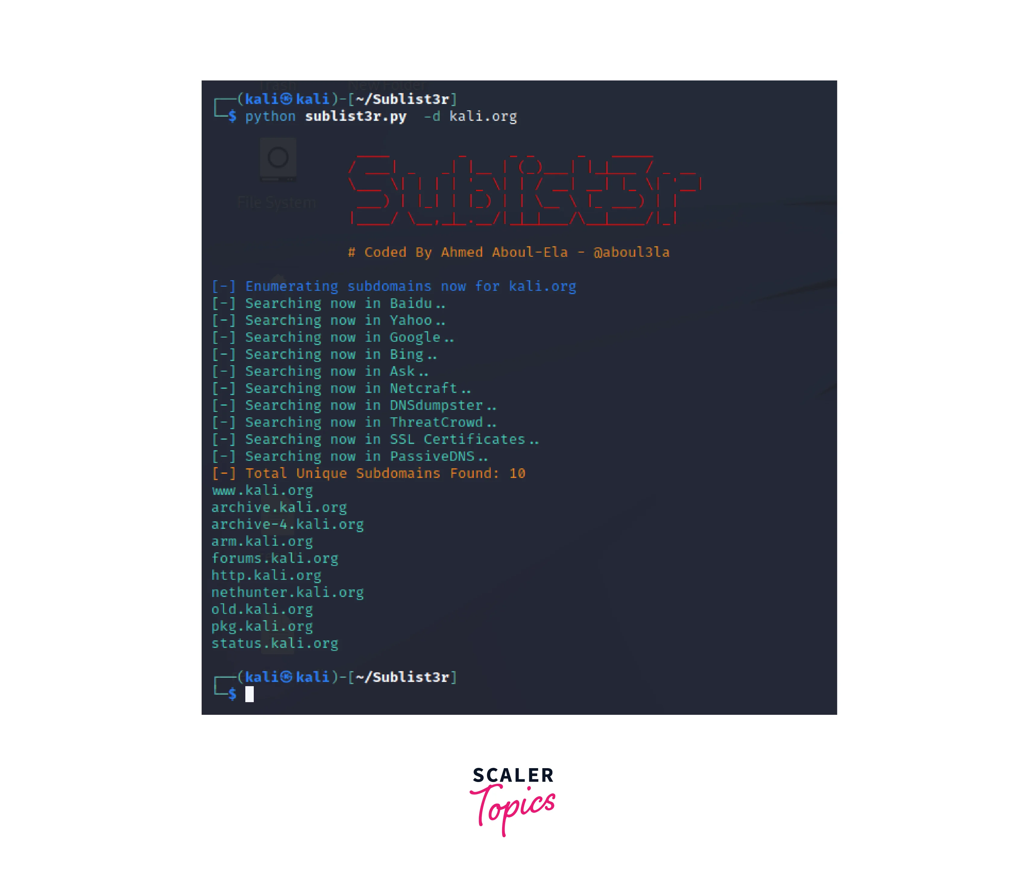 Setting up and configuring subdomain hunting tools can be a critical step in ensuring the accuracy and efficiency of subdomain hunting. Several factors need to be considered when setting up and configuring these tools, including the tool's requirements, the target website, and the user's technical expertise. In this section, we will see the setting up and configuration setting for Sublist3r.