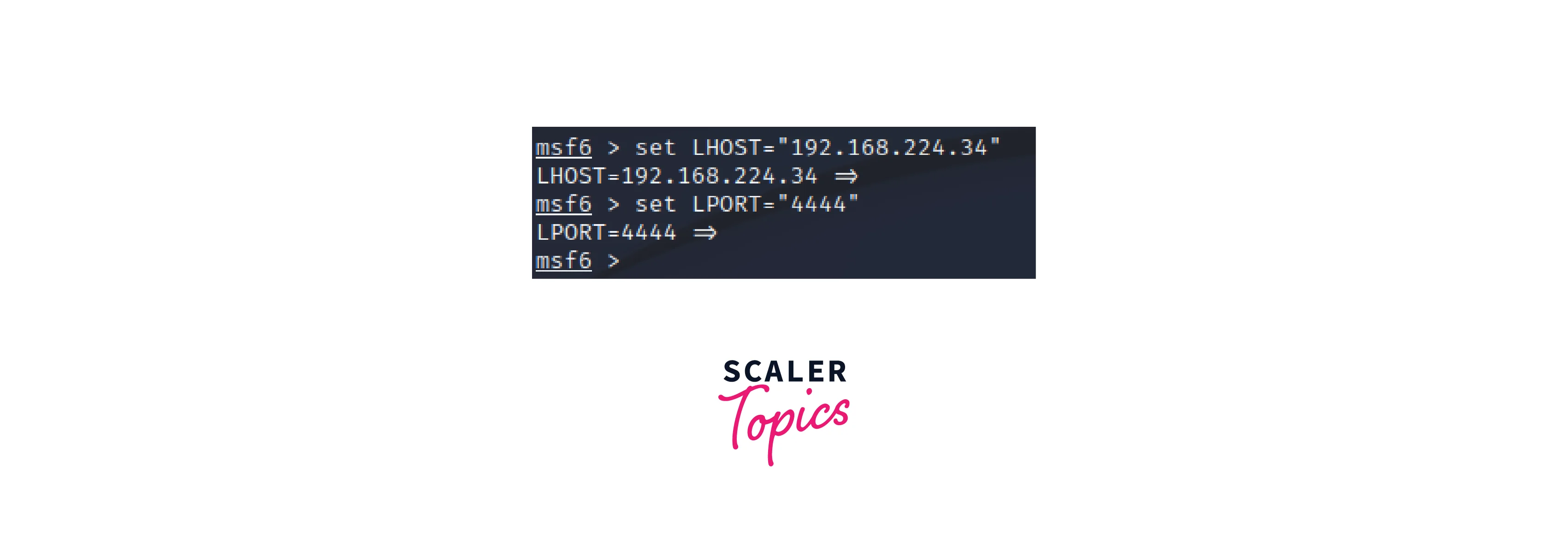 After choosing a payload, it is necessary to configure the payload to meet the specific needs of the engagement. In this example, you would specify the IP address and port to use for the reverse shell.For example: