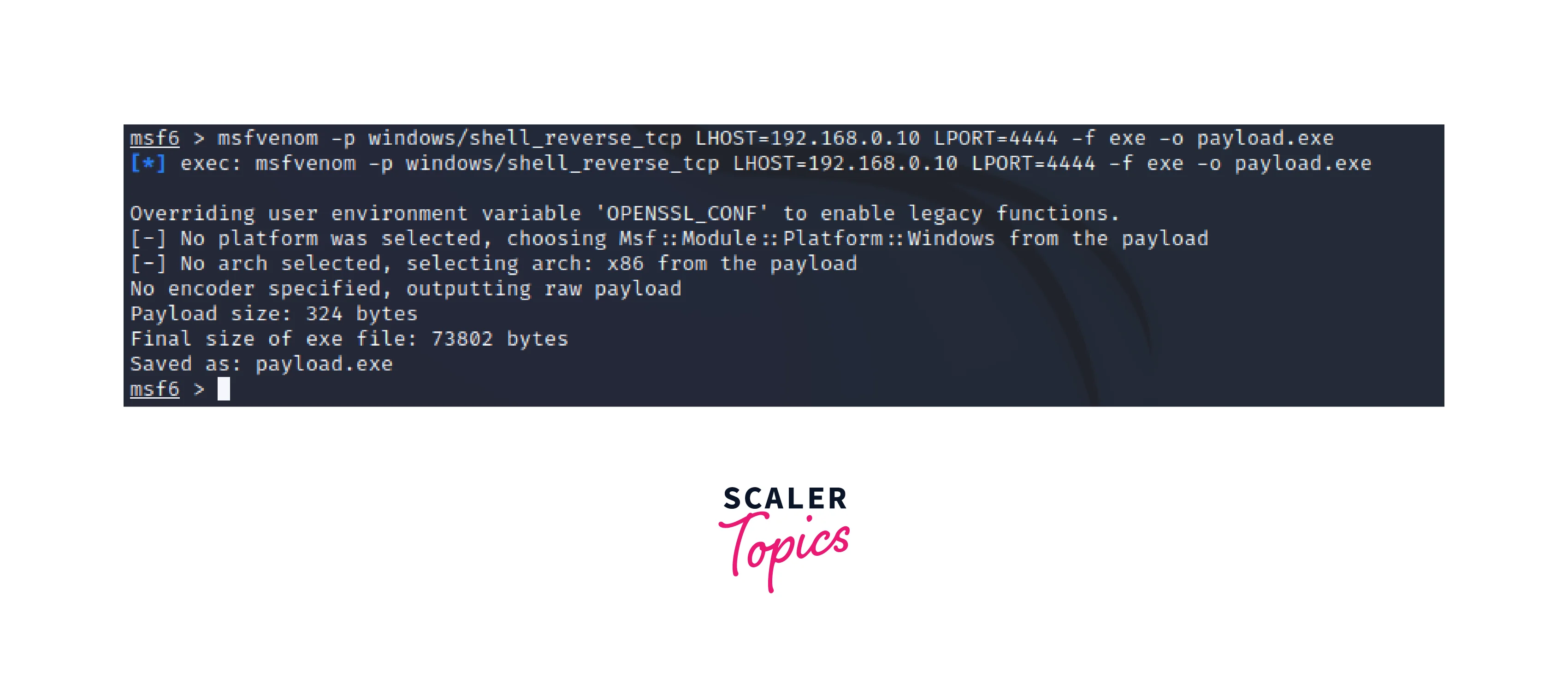 Once the payload has been configured, the next step is to generate the payload. This can be done using the Metasploit Framework's msfvenom tool.For example: