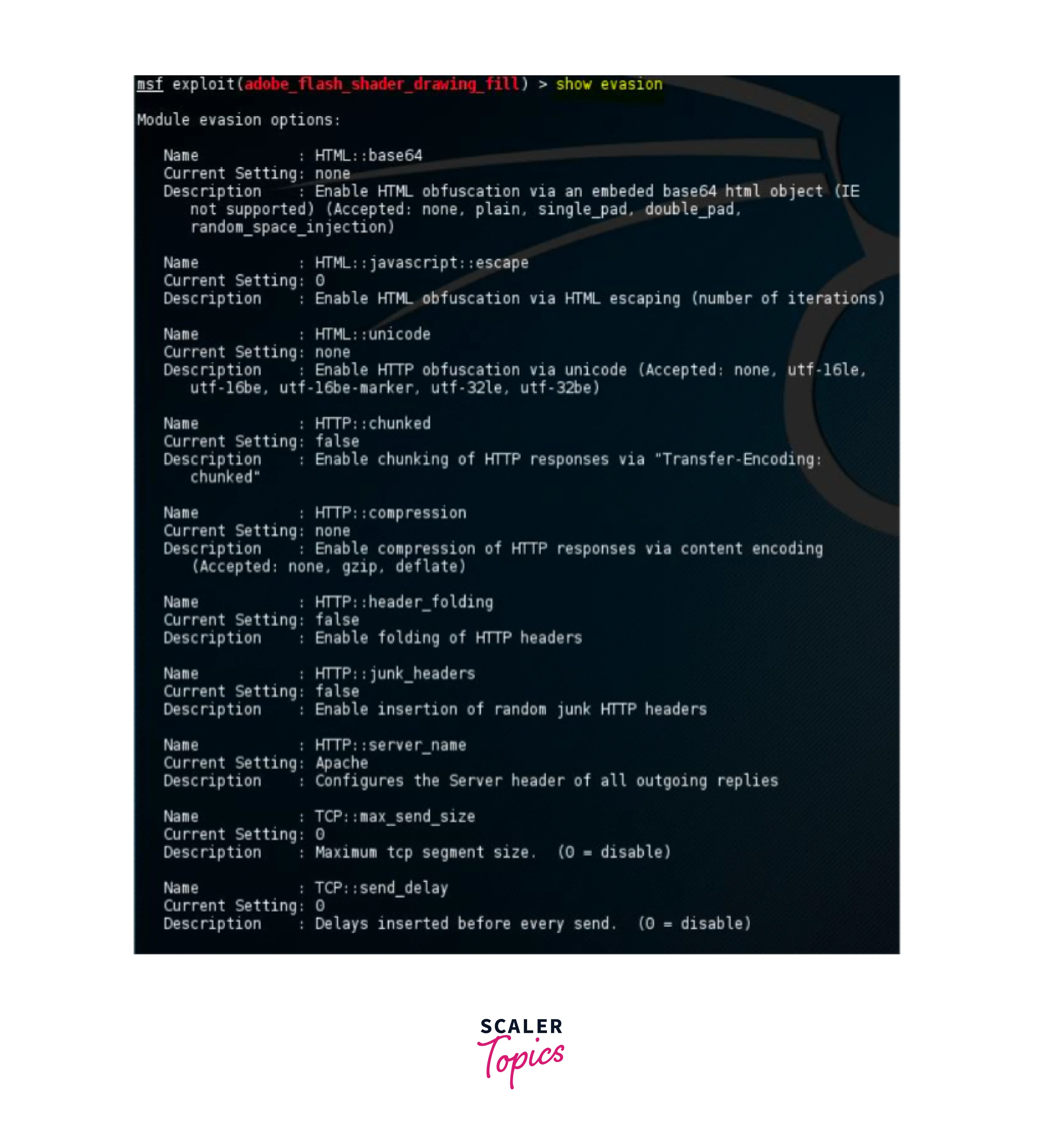 This command is used to show the list of all possible evasion techniques available. In the following example of smb_delivery, the list is empty, these settings can be changed as per requirements.