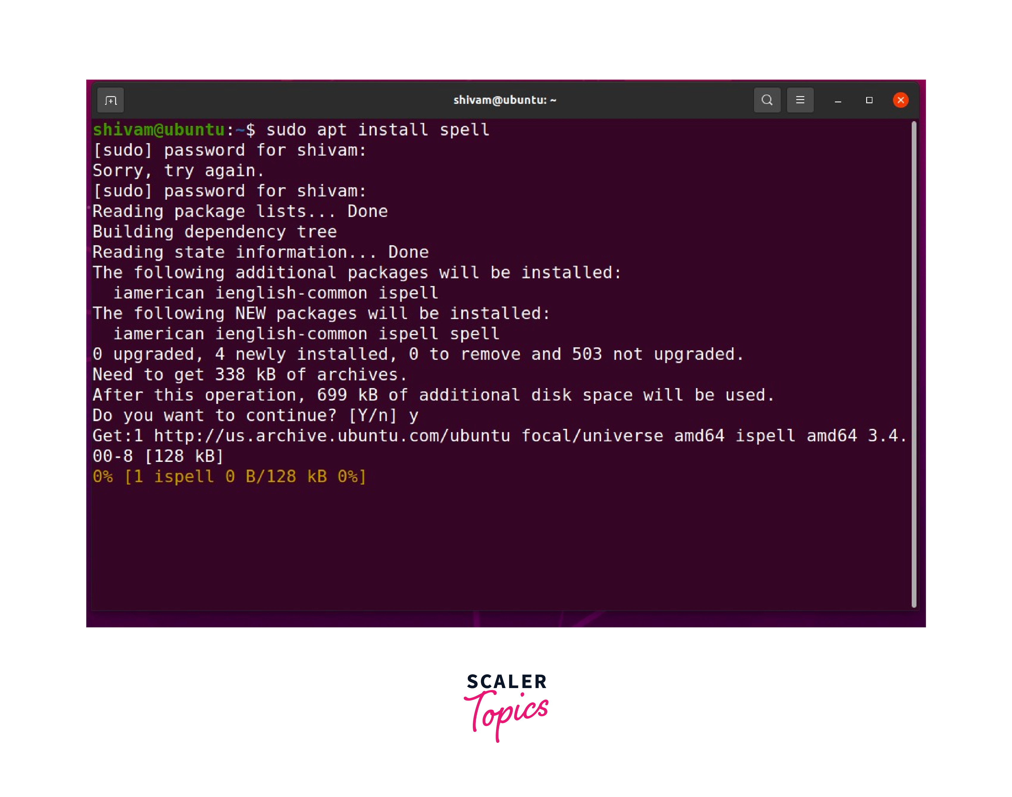 After entering this command, you'll be prompted to enter your password. Type your password and then press the 'y' key followed by the 'Enter' key to confirm the installation.