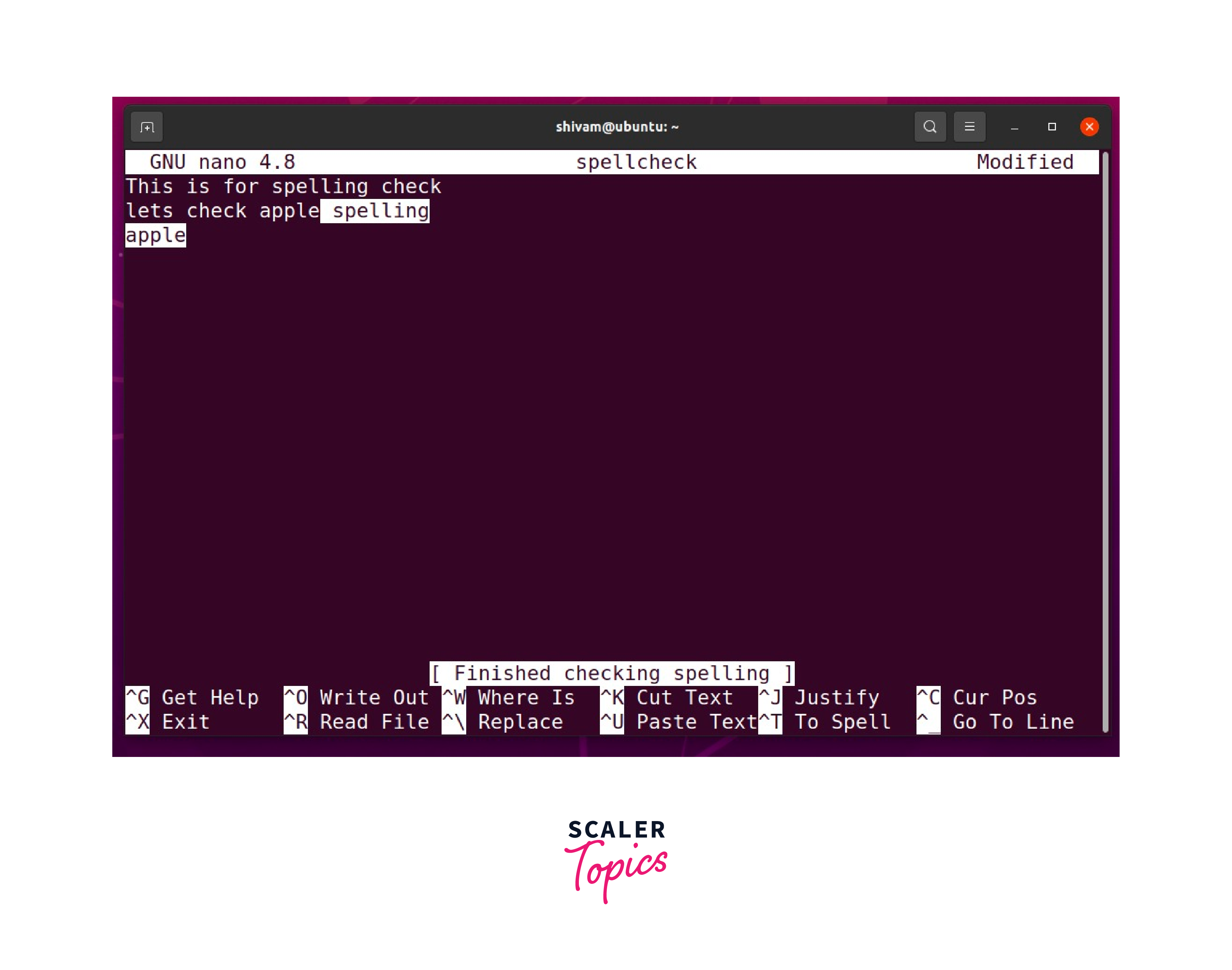 To use spell check in Nano, you must first install the spell check package. You can do this by running the following command: