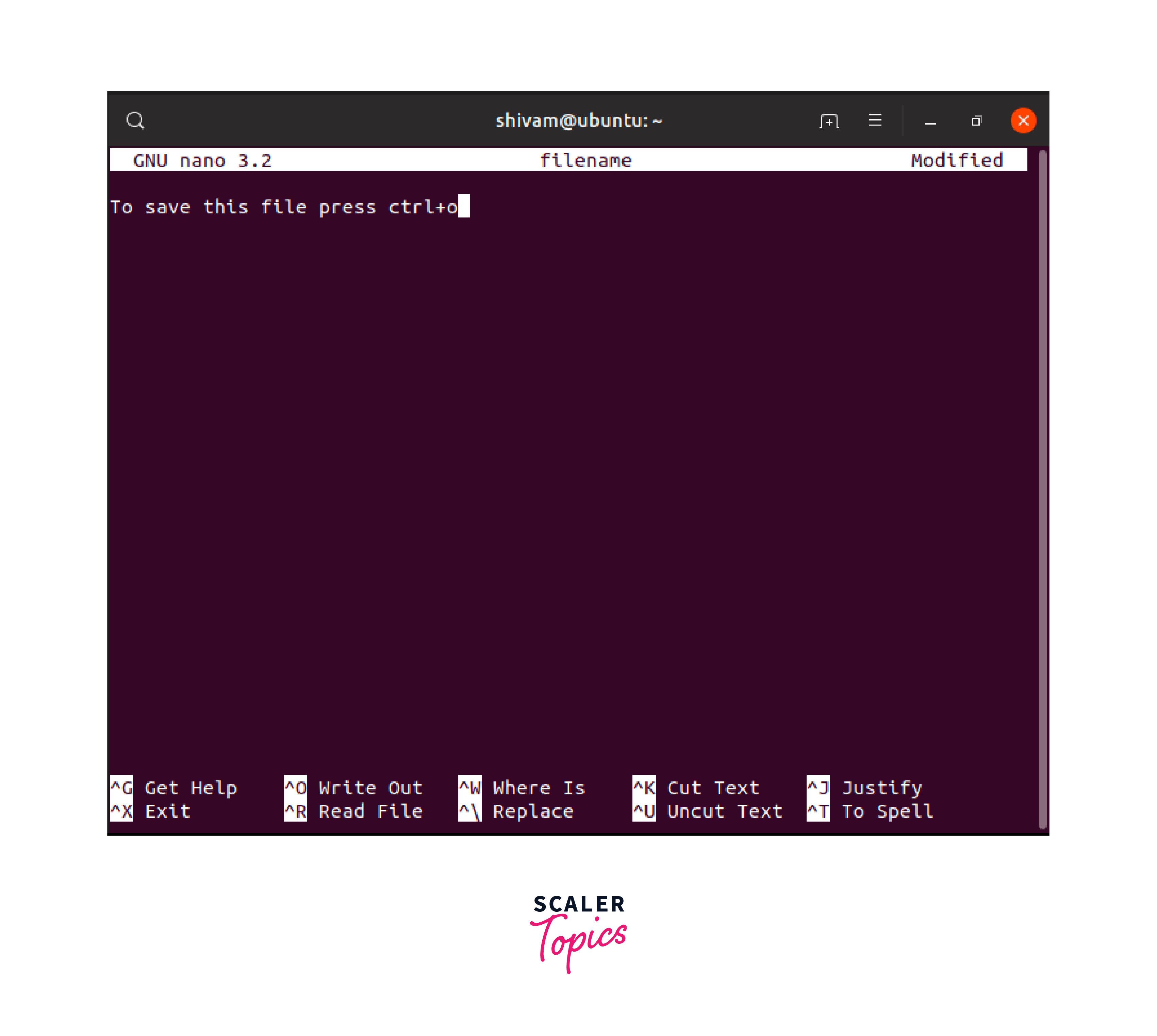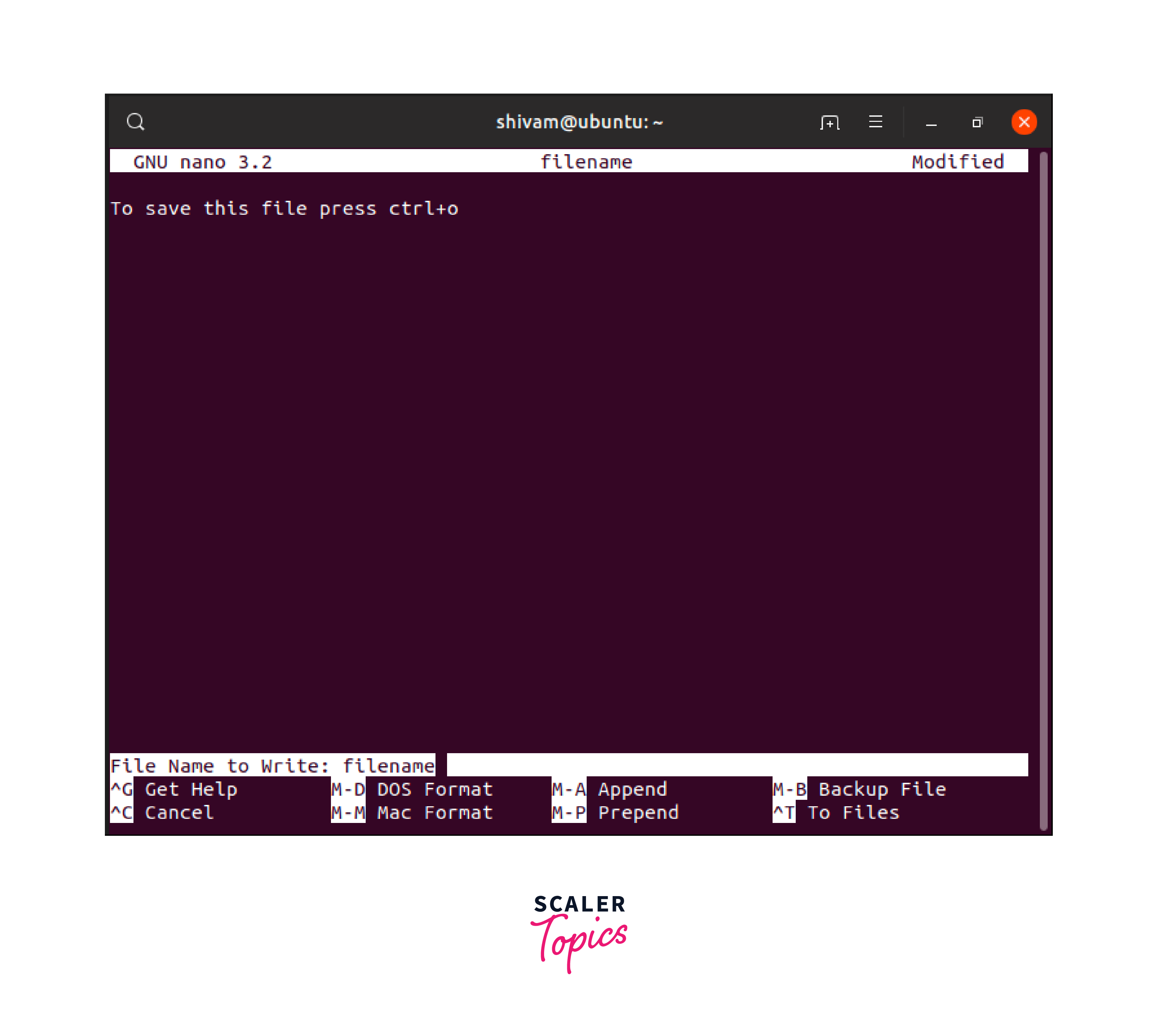 After pressing the Ctrl+o, it will ask you to enter a filename. If you want to save your changes in a new file or create a new one, you should provide a different name. However, if you wish to retain the existing file, you can keep the filename as it is.