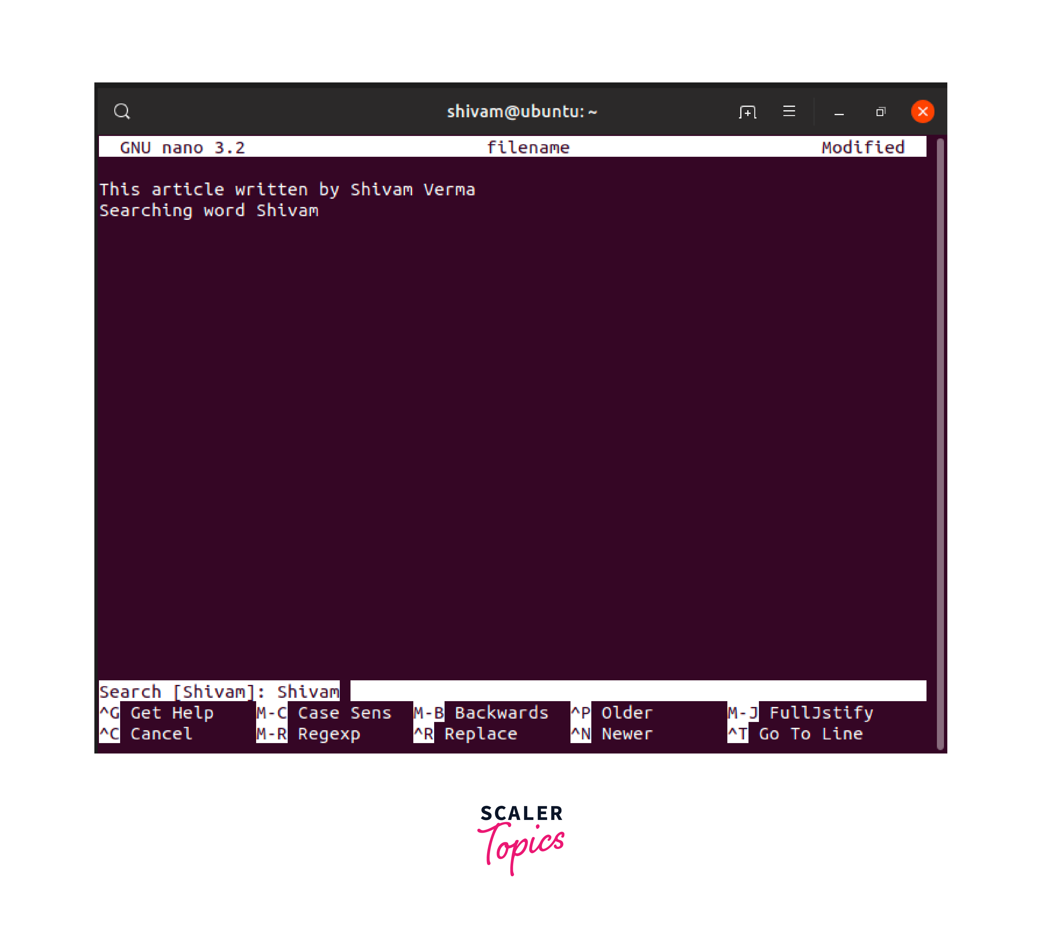 Nano is a versatile and easy-to-use text editor that is widely used in command-line environments, particularly on Unix-based systems. It is well-known for its simplicity, making it an excellent alternative for both beginners and professionals who need to edit text files in a terminal quickly. This editor operates on a WYSIWYG(What You See Is What You Get) principle. It builds upon the features of UW Pico, enhancing its ease of use. In contrast to editors like Vim, Nano doesn't have different modes. It offers a simple Graphical User Interface (GUI) that enables users to directly interact with the text, eliminating the need to switch between modes like in Vim.