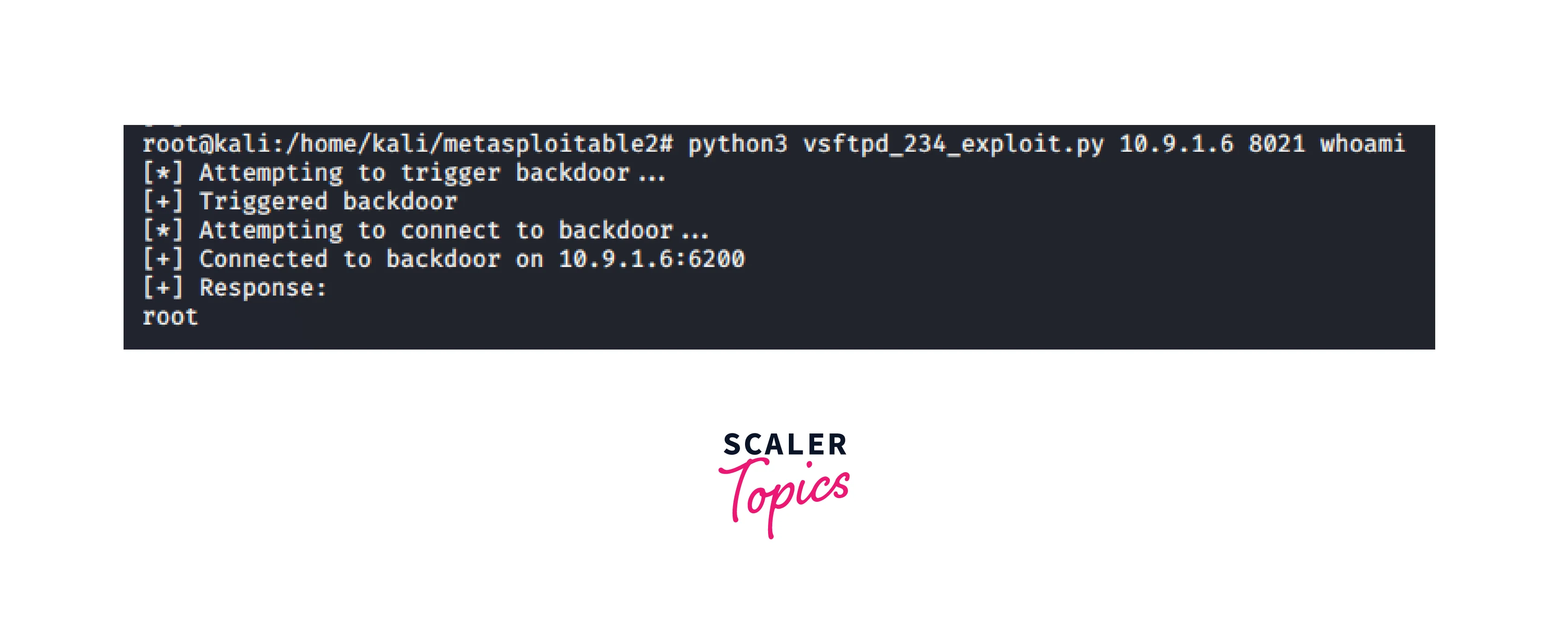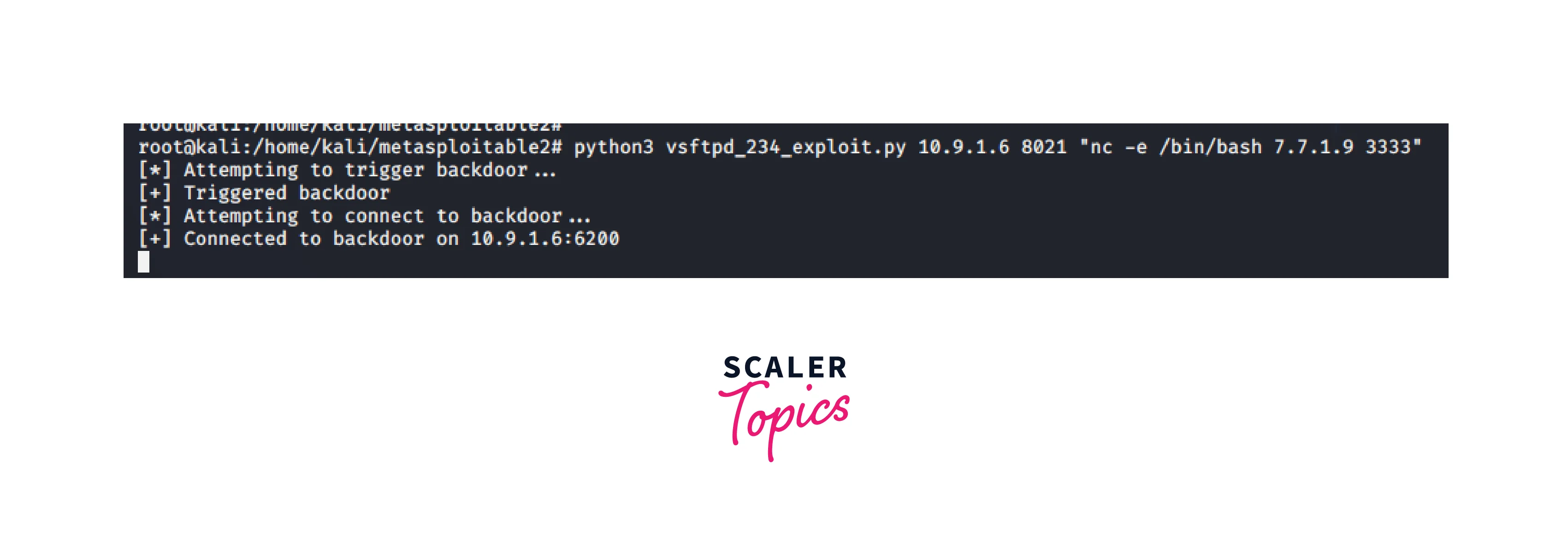 - vsftpd 2.3.4 has been successfully exploited using a Python attack to establish a reverse shell using the 3333 port.