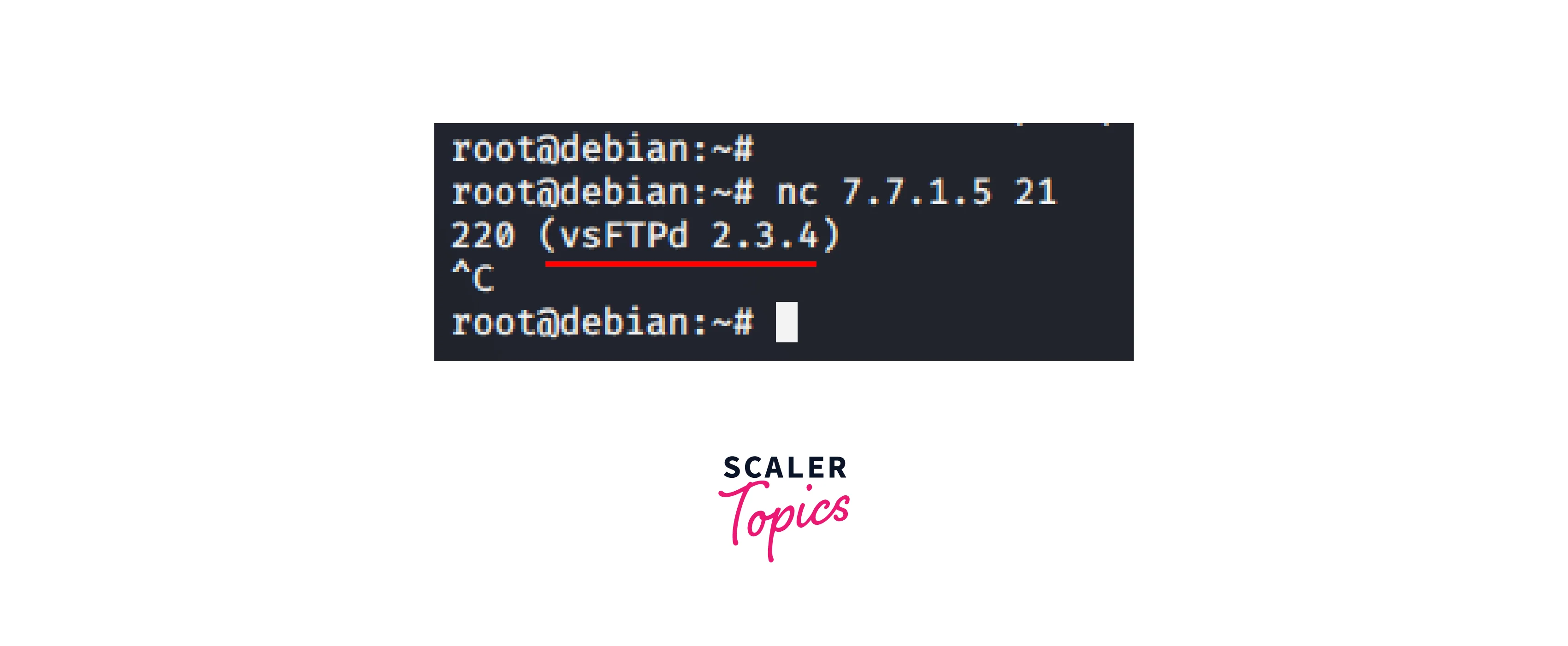 - Vulnerable vsftpd 2.3.4 is running on machine B on port 21.