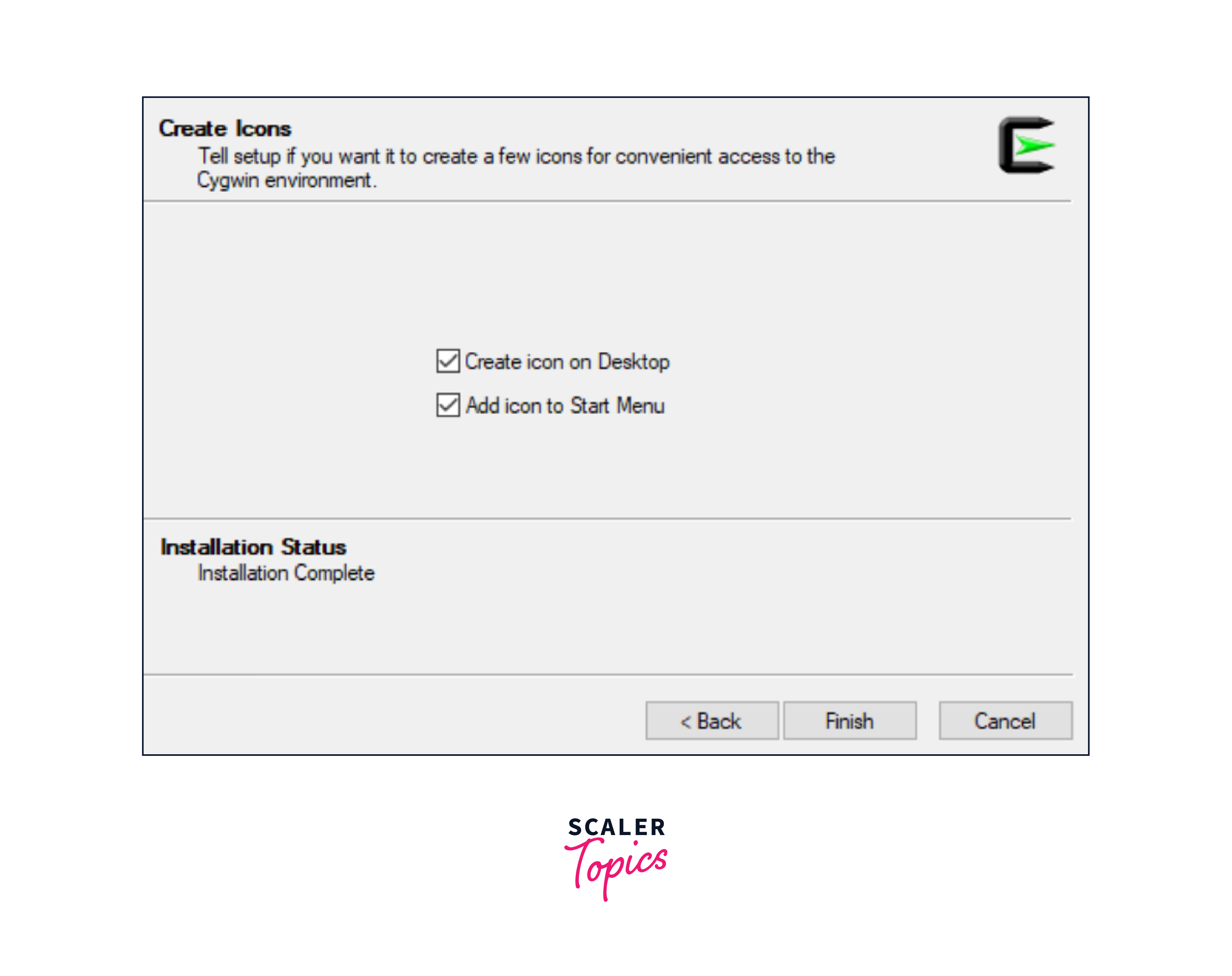 - When setup is complete, you’ll be shown the option to create icons on the Desktop and Start Menu for easy access. Click “Finish” when done to end the setup wizard.