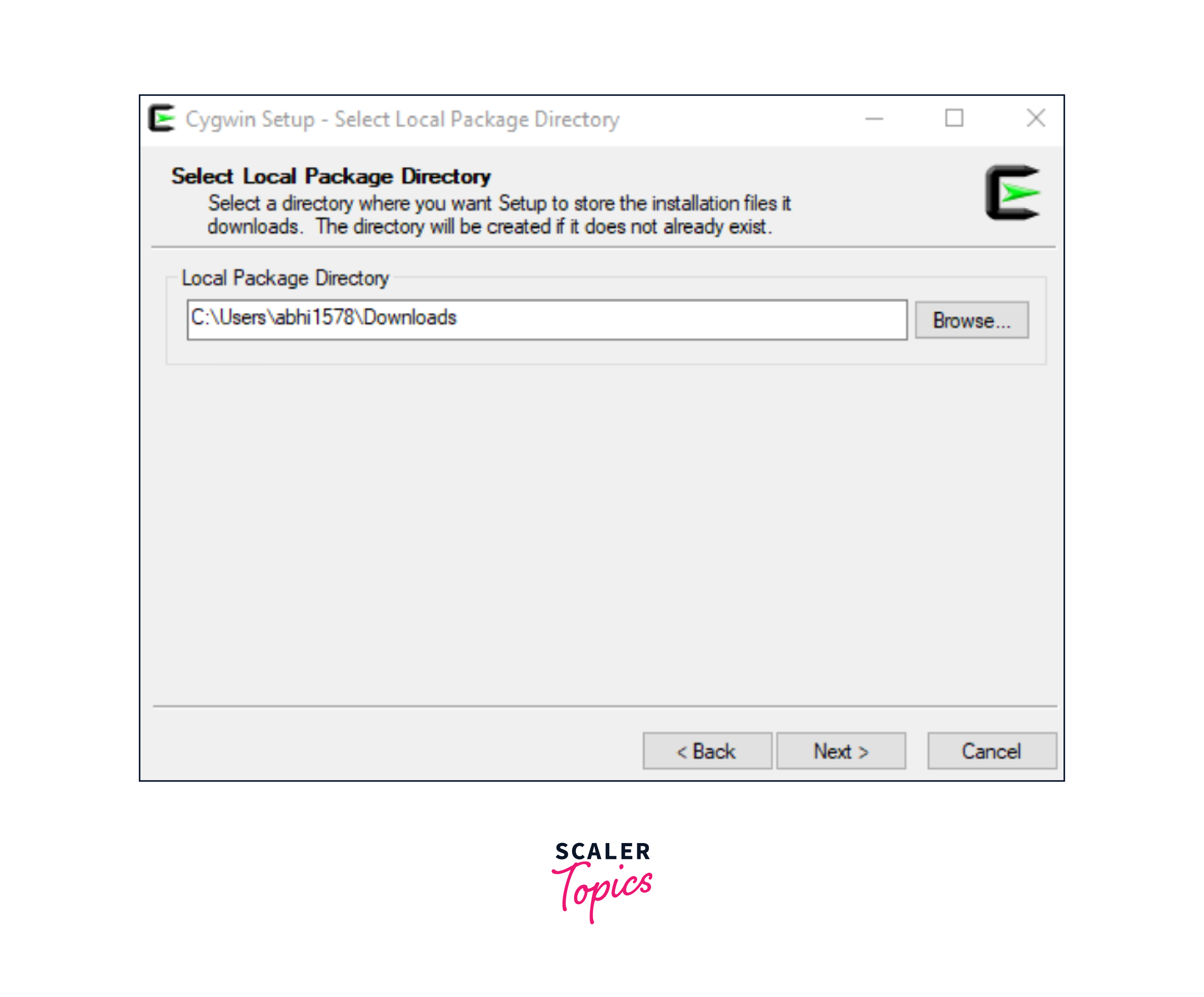 - Now, the setup will ask you where to put the package files you're going to download. By default, it points to your computer's "Download" folder. If you prefer a different location, you can specify it here. Subsequently, select "Next" to continue with the setup.