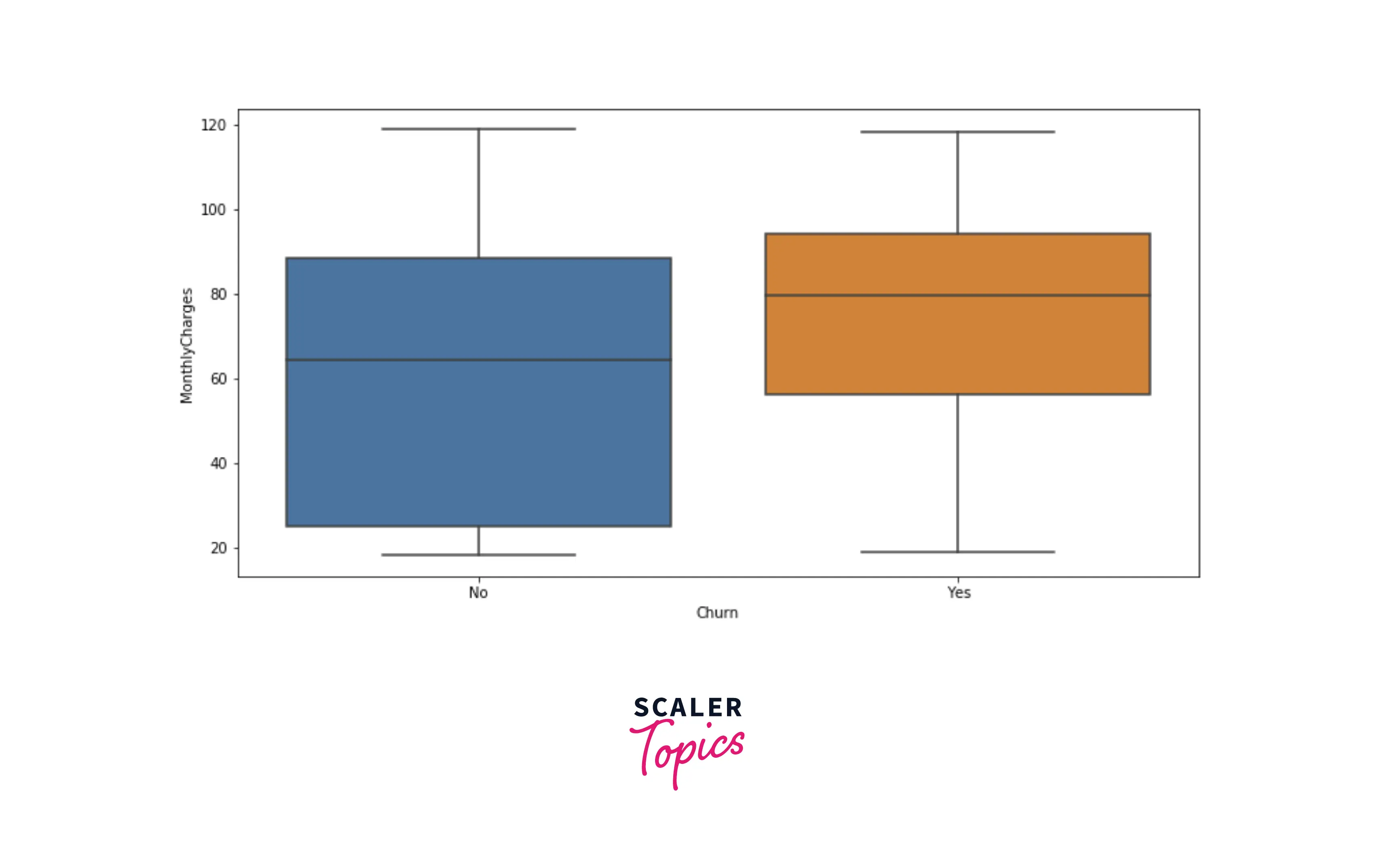 - Now, let’s explore distributions of numerical features, tenure, and monthly charges, using box plots for each target label. As you can see below, people with low tenure are likely to churn compared with people with higher tenure. Also, customers who churned are more likely to have higher monthly charges.