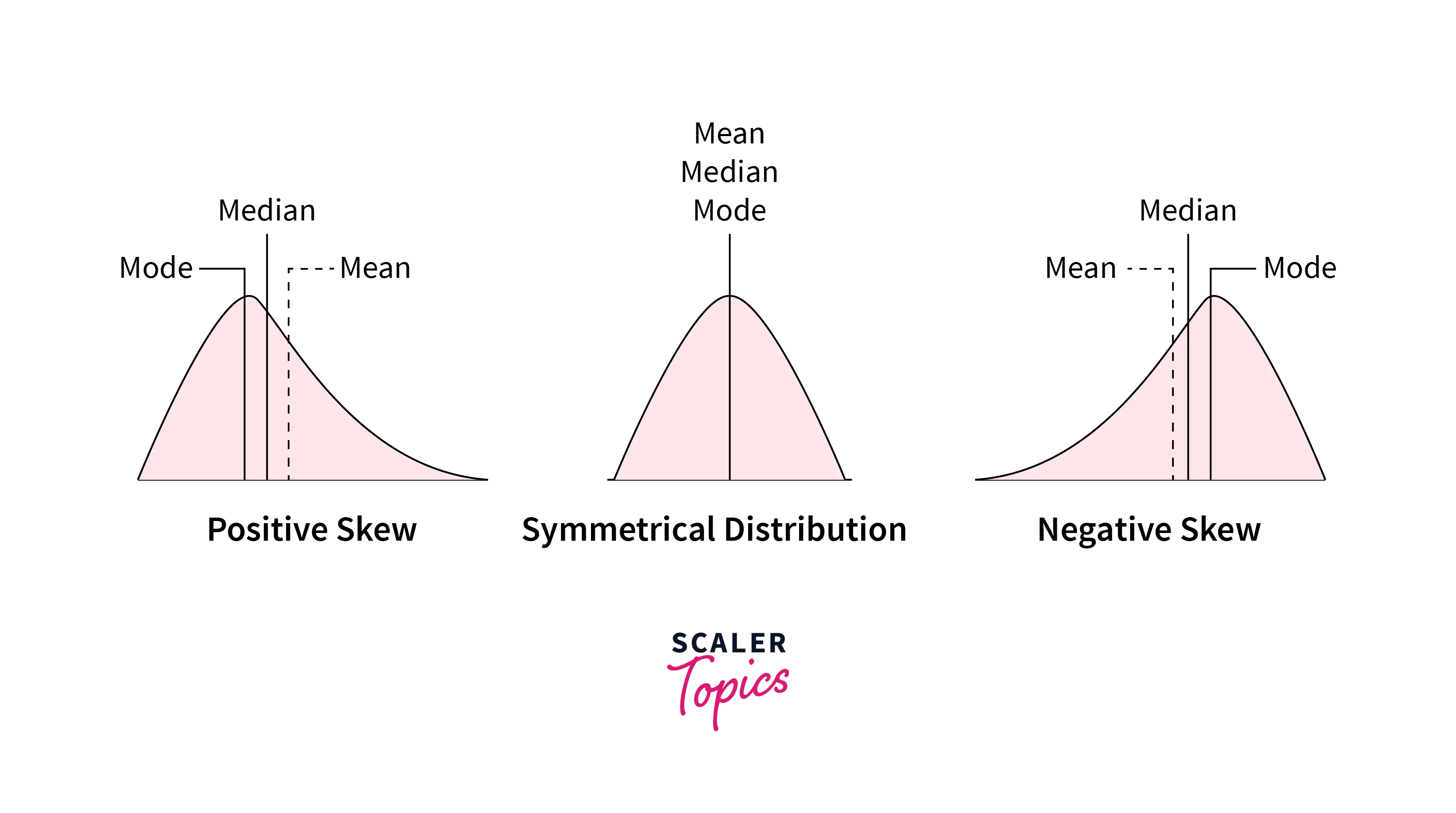 - A dataset is called left skewed or right skewed if the values are more clustered toward the left or right side of the mean, respectively. The skewness values can be zero, positive, or negative. Normal Distribution has zero skewness as it is a symmetrical distribution, and the mean and median are the same.