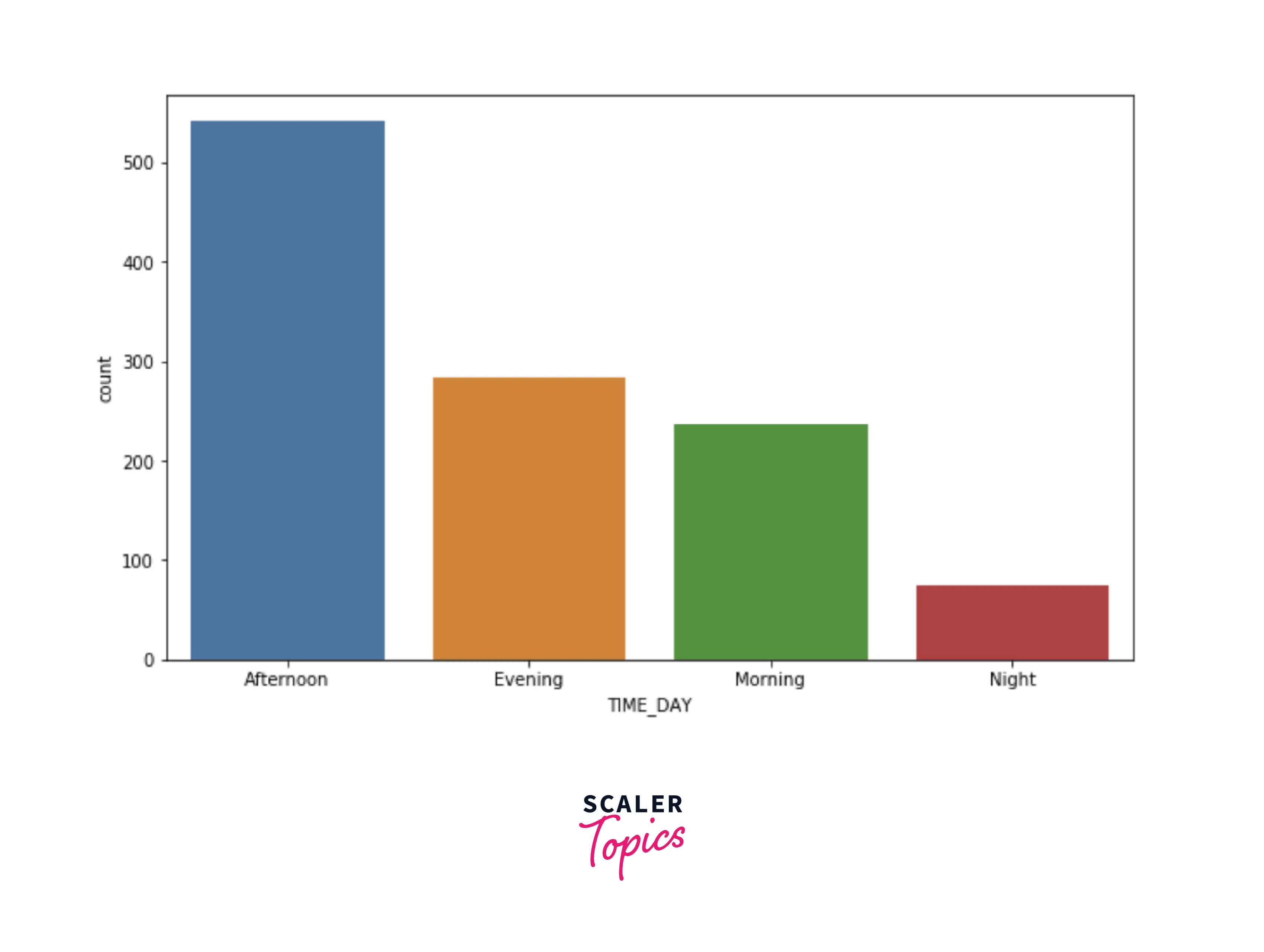 - Let’s explore the count of the rides based on the time of the day. As we can see below, most of the rides are started during the afternoon, and the least number of rides are started at night.