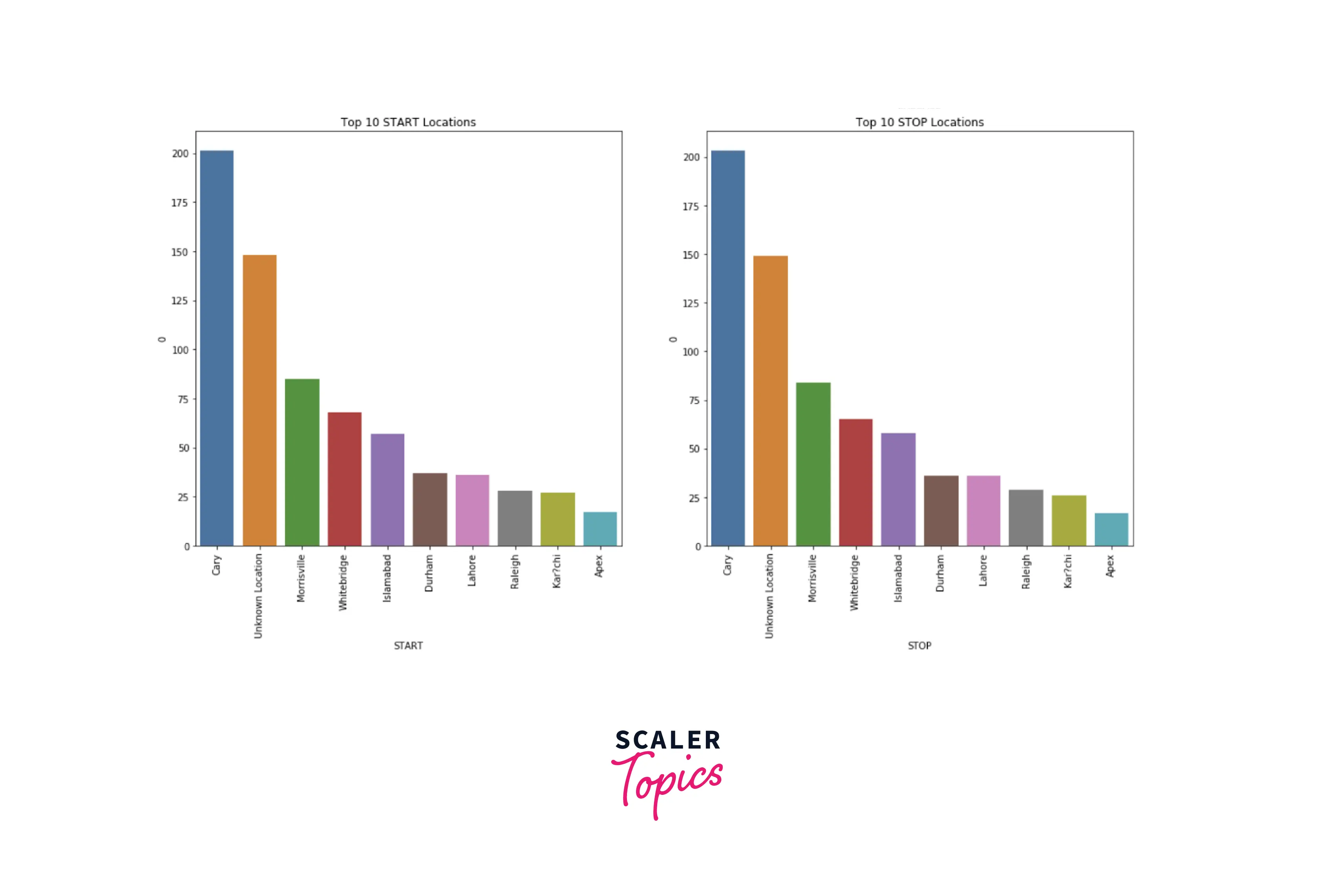 - Top 4 locations for both start and stop are - Cary, Morrisville, Whitebridge, and Islamabad.