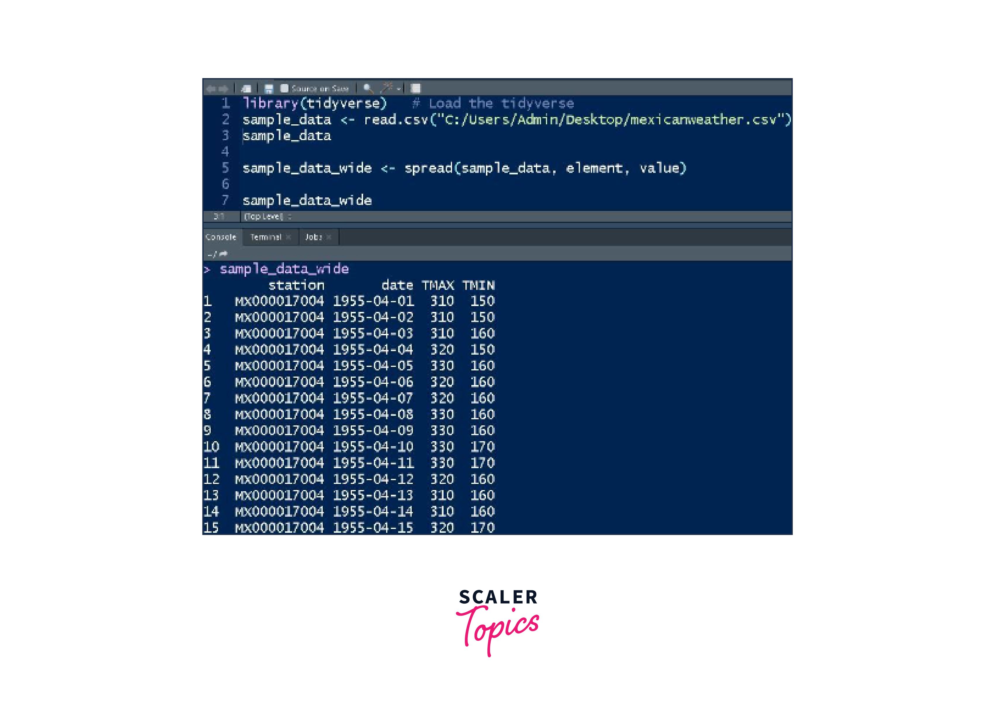 Conversely, the spread() function is used to convert long datasets back into wider formats when needed.