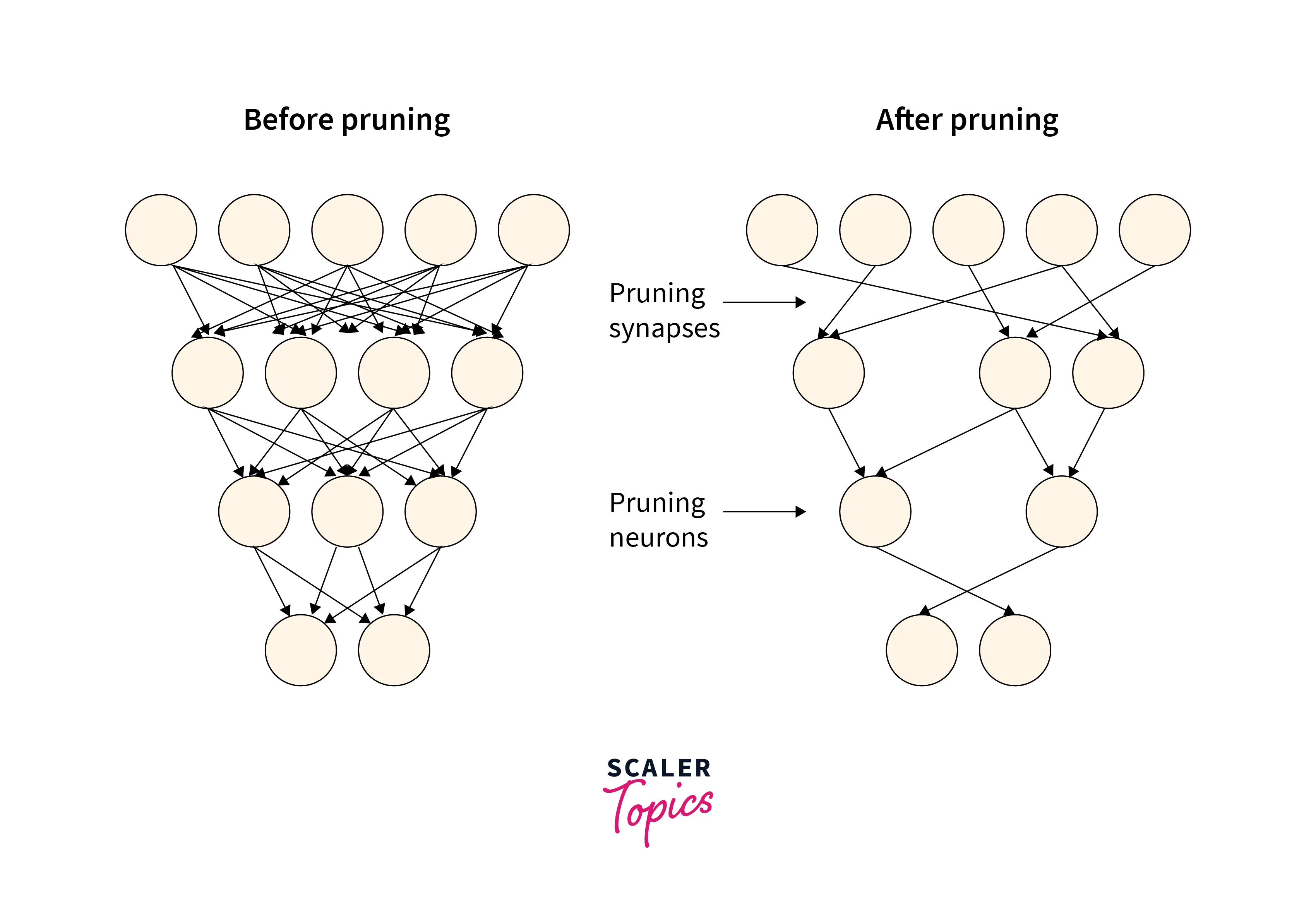 Pruning is the method of reducing the number of parameters by removing redundant or insensitive neurons. There are two methods to prune