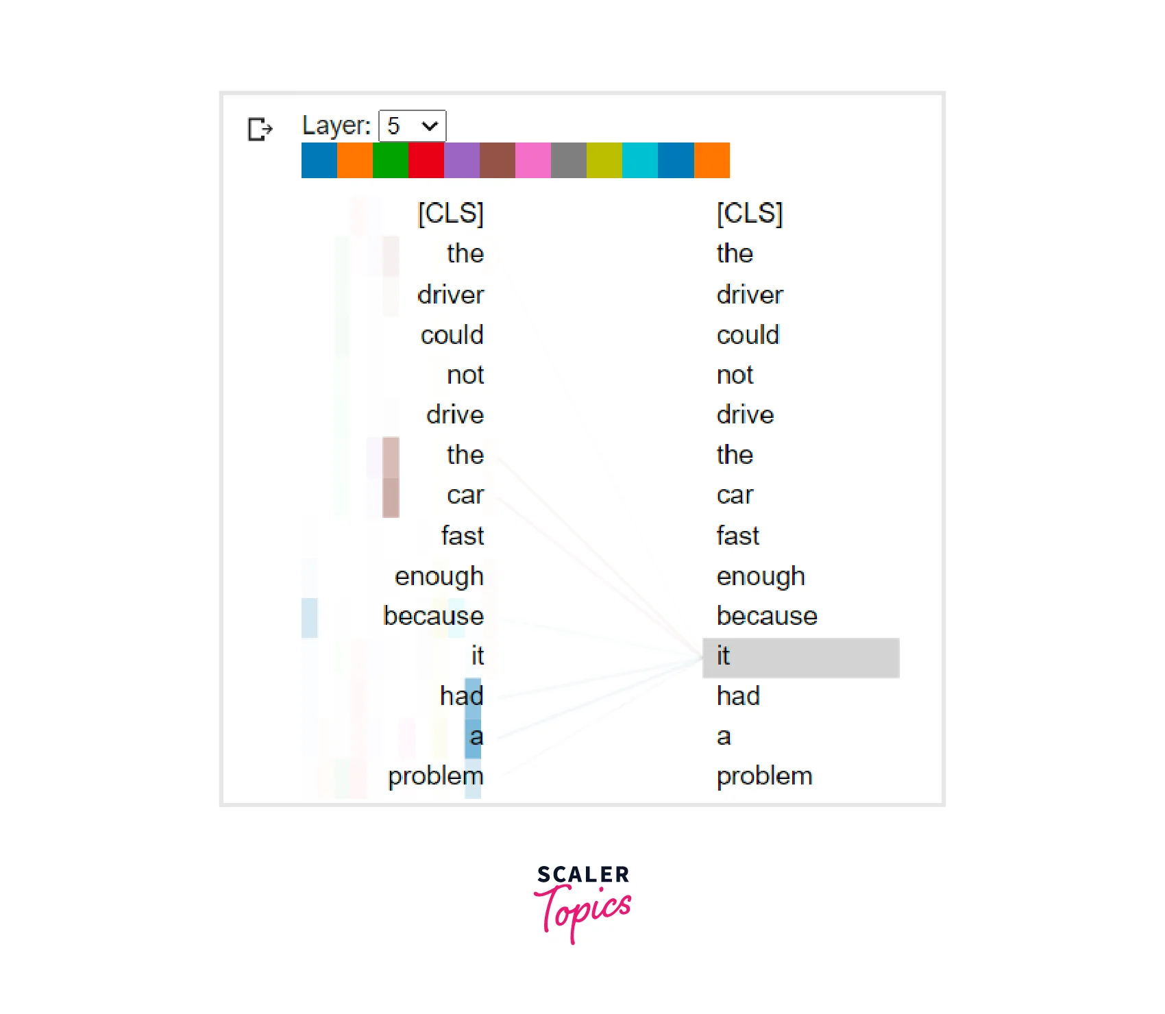 The above illustration shows the attention weights of a learned model, and we can see that when encoding the word "it", the model was rightfully paying more attention to the word "car" than any other word.