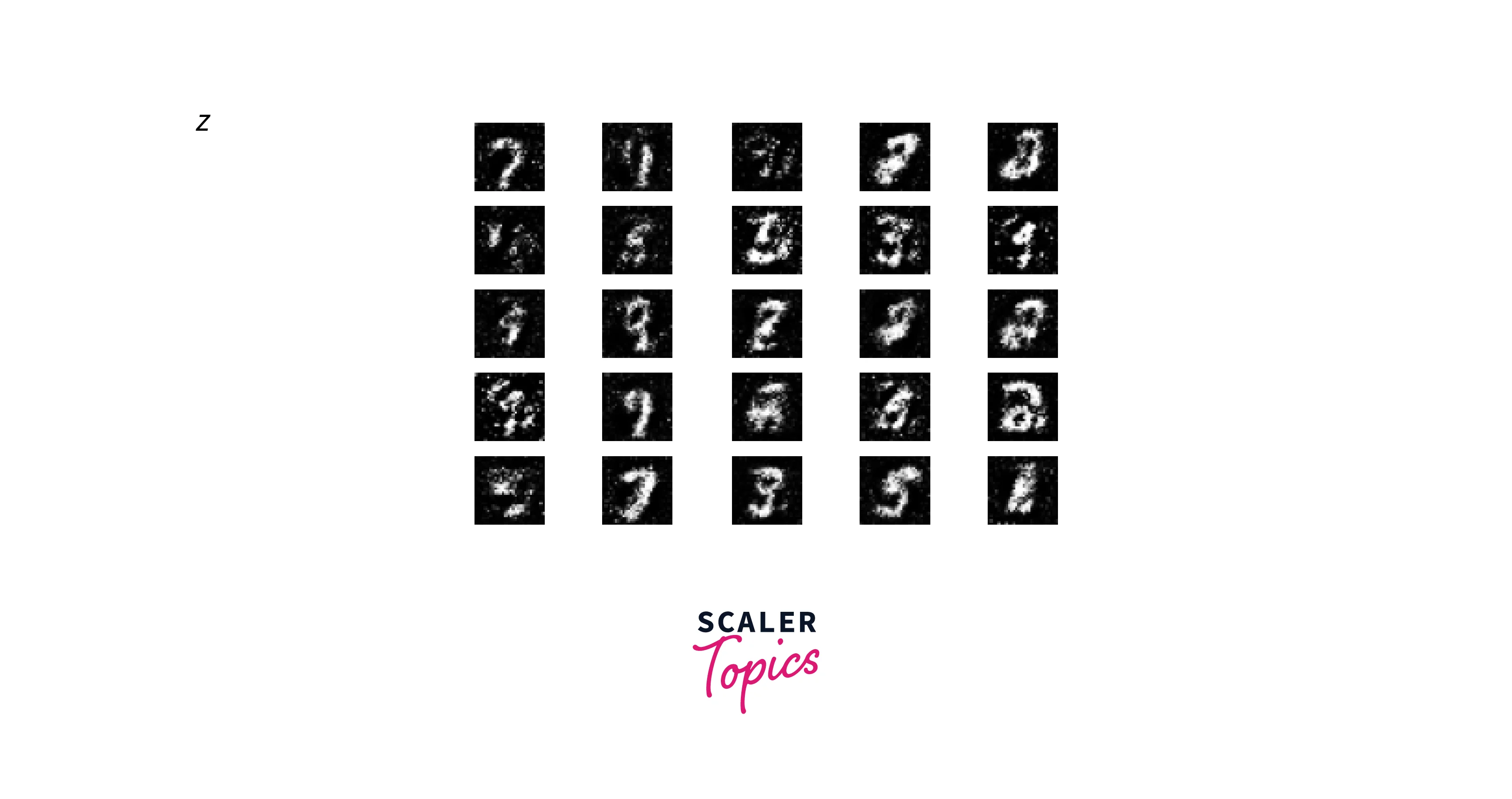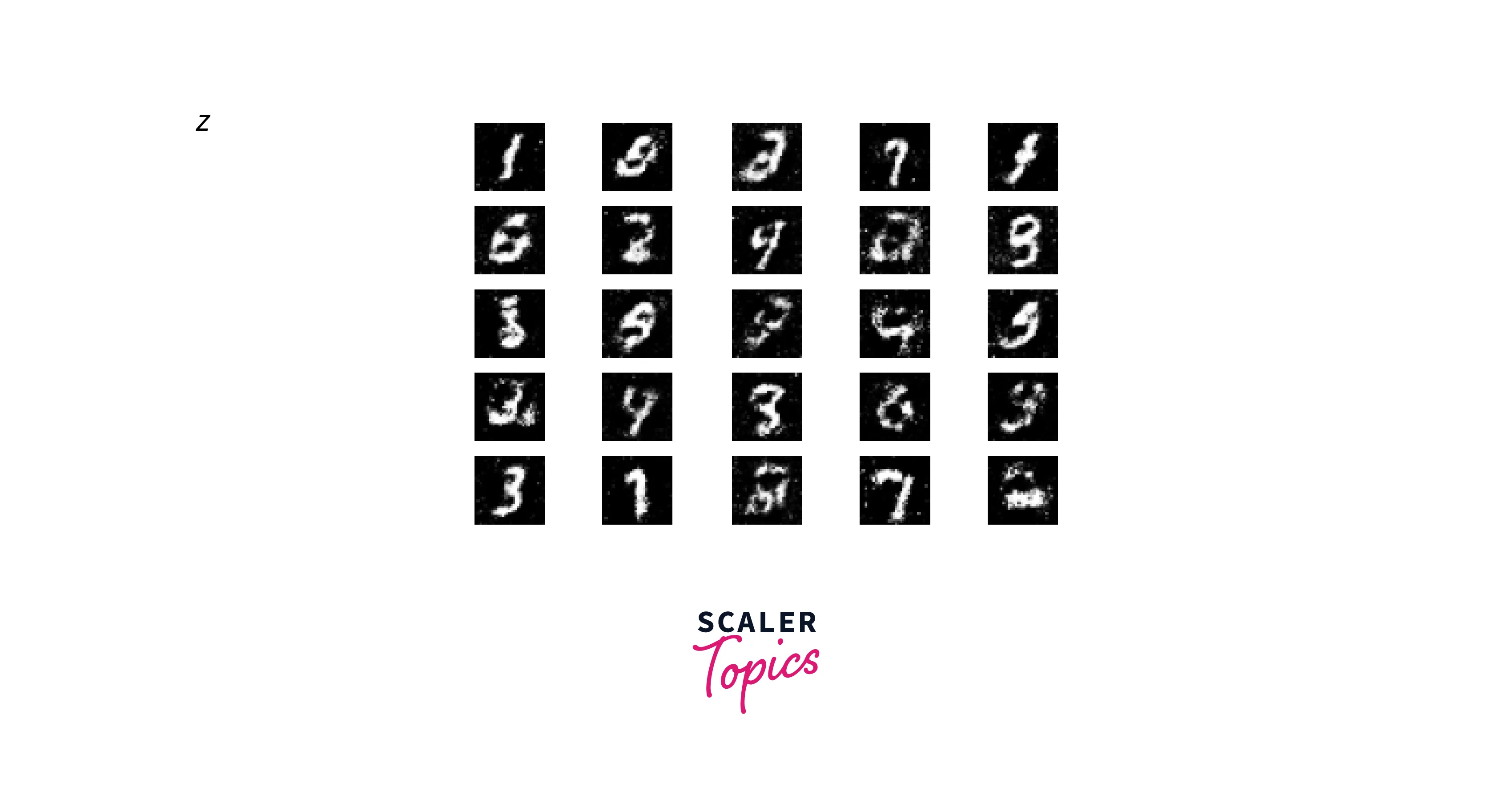 - The final output is a batch of images that look like handwritten digits, as shown in the example image provided.