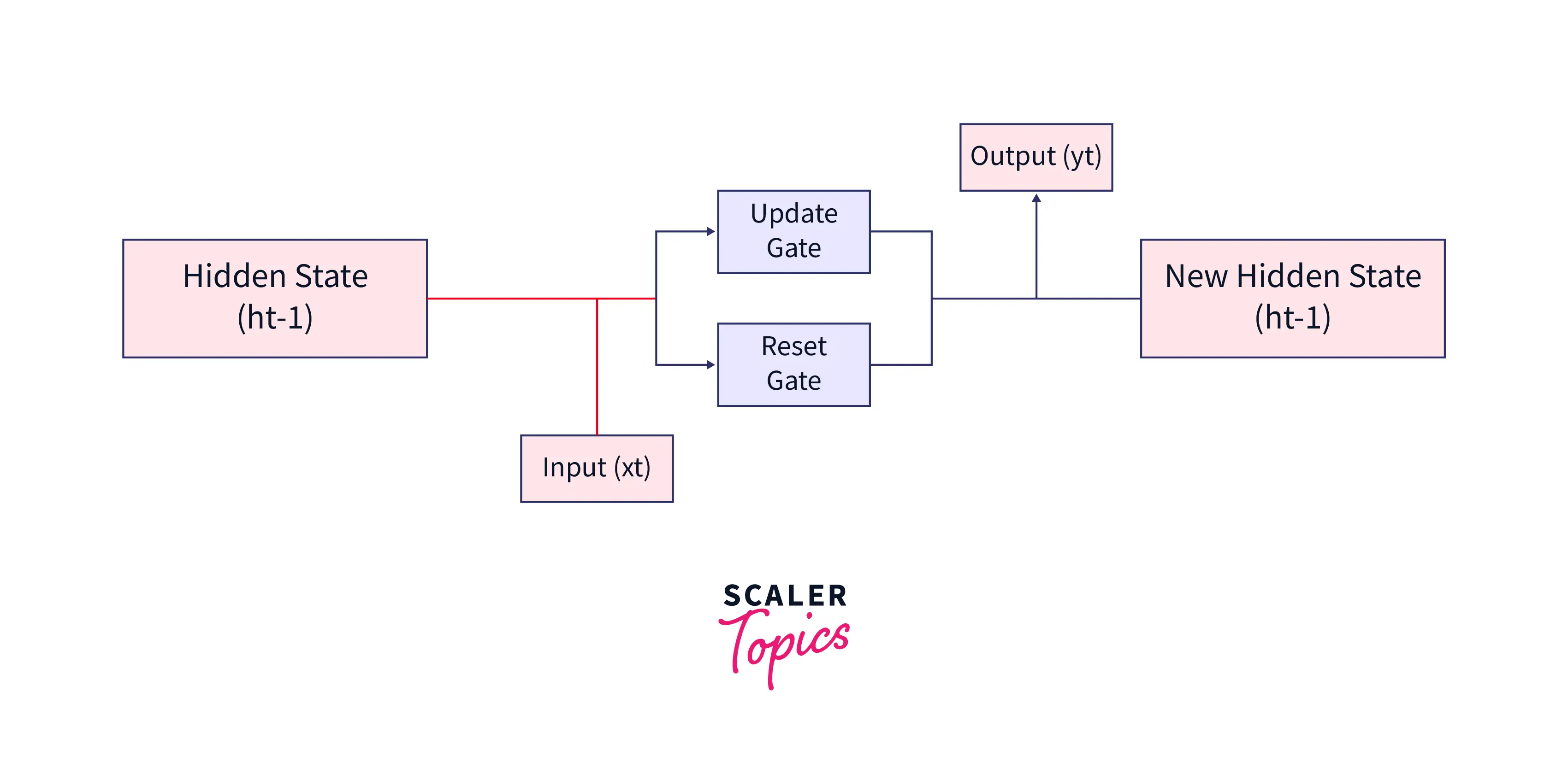 - The new hidden state is calculated using the output of the reset gate, update gate, and the candidate hidden state. The weights associated with the various gates, input and hidden state are learnt by a concept called Backpropagation.