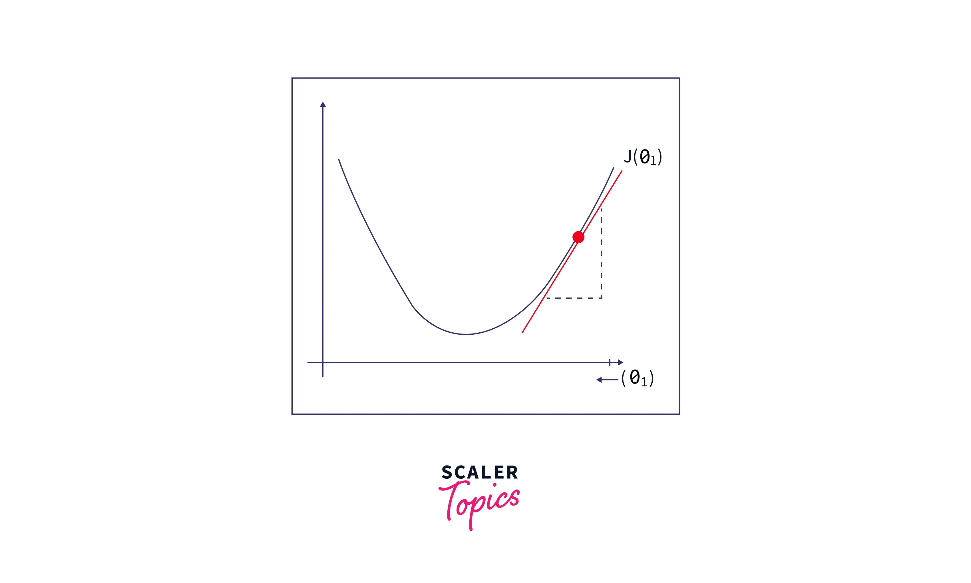 - Since we have initially assigned an arbitrary value for and found that the cost function value is high, find the slope at that point.