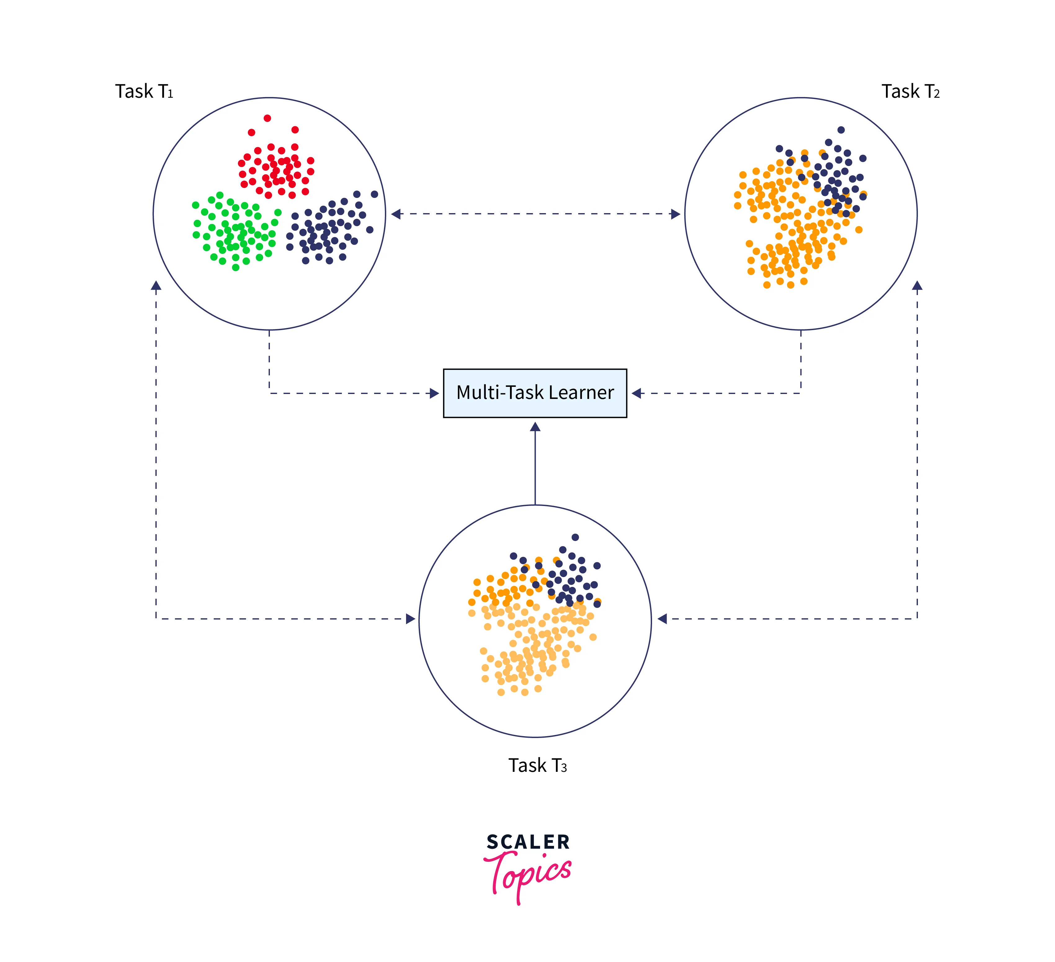 Multitask learning is the simultaneous learning of many tasks without distinguishing between sources and targets. Unlike transfer learning, where the learner initially does not know the target task, the learner learns information about numerous tasks simultaneously.